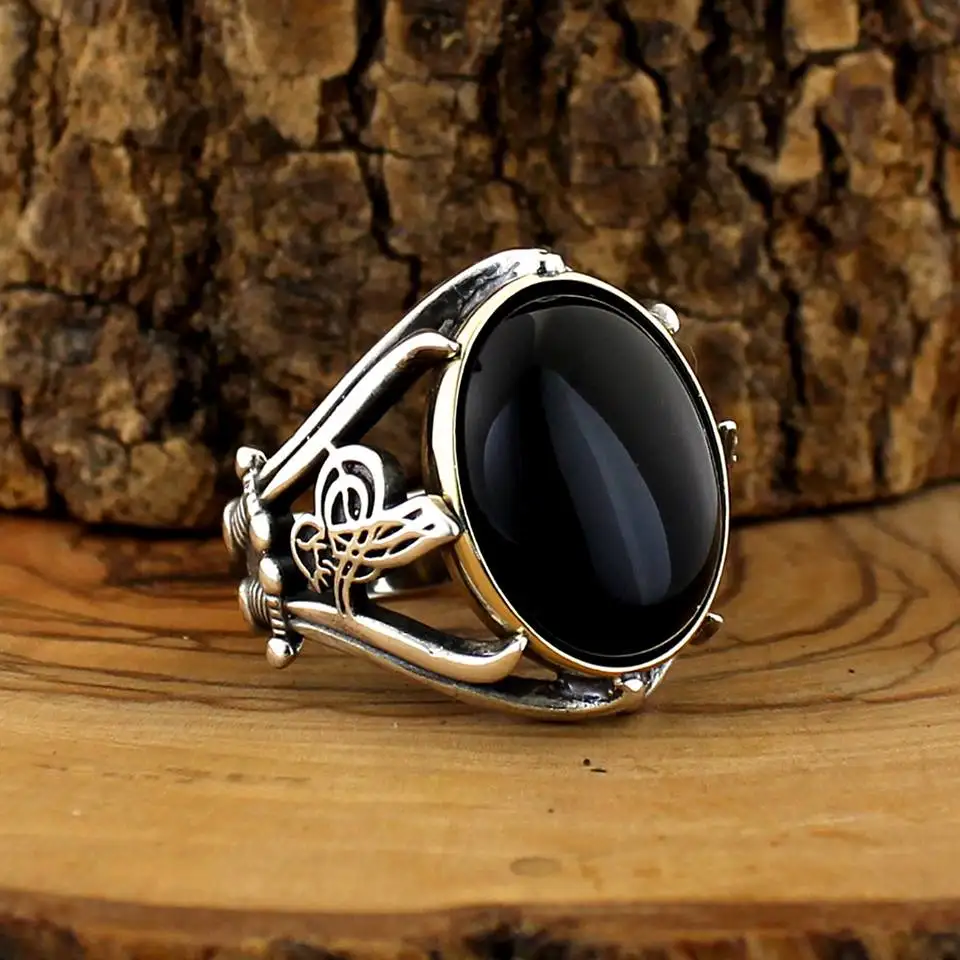 Турецкий Стиль реальные 925 стерлингового серебра натуральный камень кольцо для мужчин оникс Aqeq Циркон камней ювелирные изделия Подарочный винтажный аксессуар