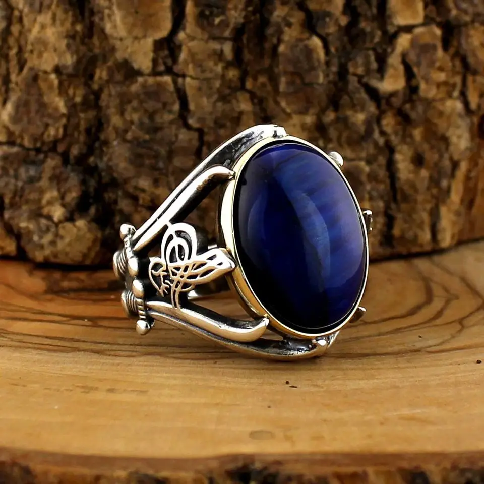 Настоящее серебро 925 пробы натуральный камень кольцо для мужчин он...