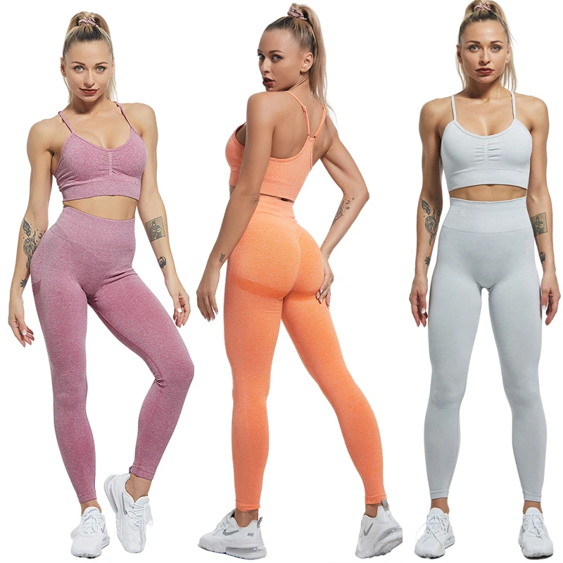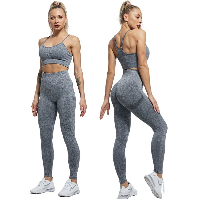 Комплект Спортивный женский из 2 предметов, леггинсы с высокой талией и бюстгальтер пуш-ап