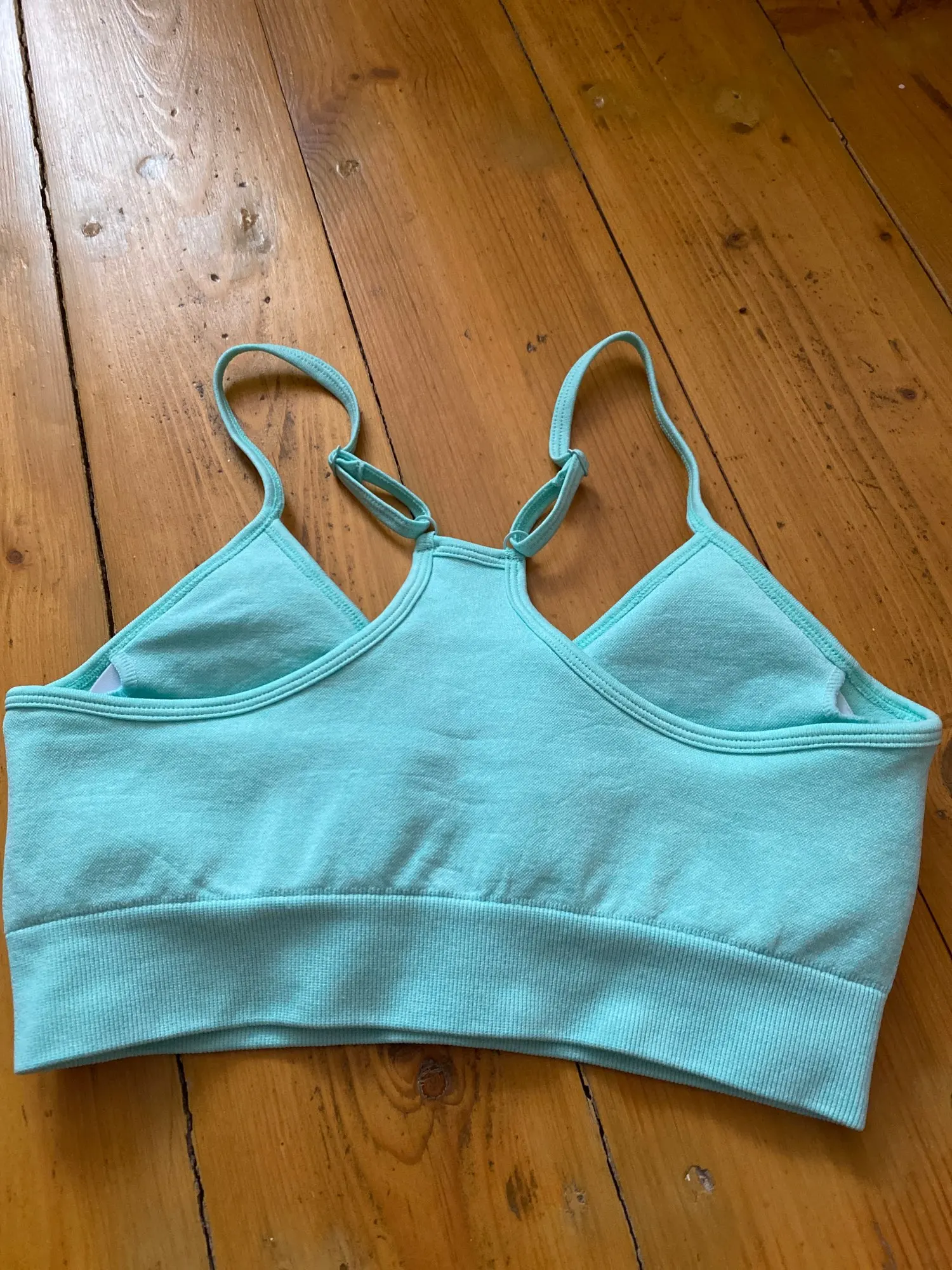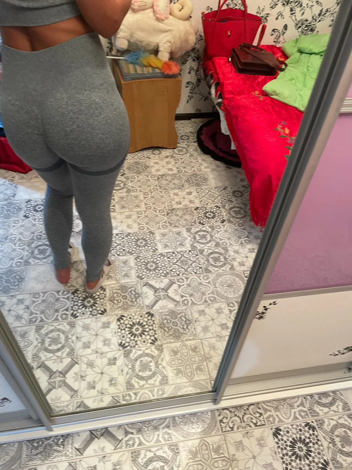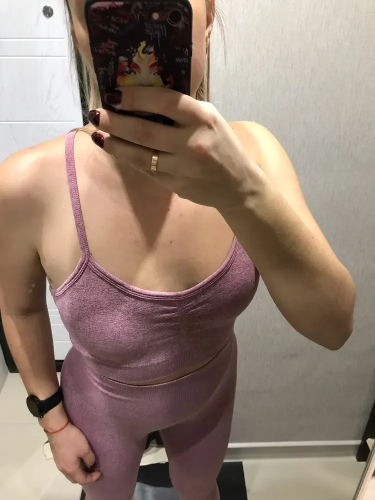 Леггинсы немного обтягивают попу. Бюстгальтер немного великоват