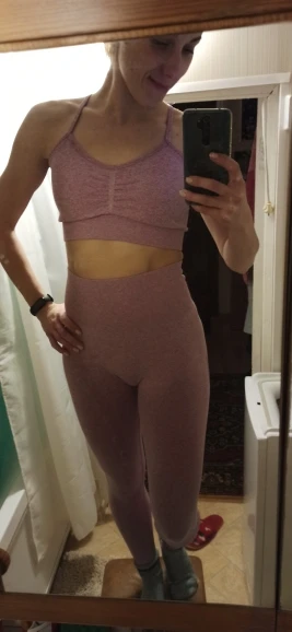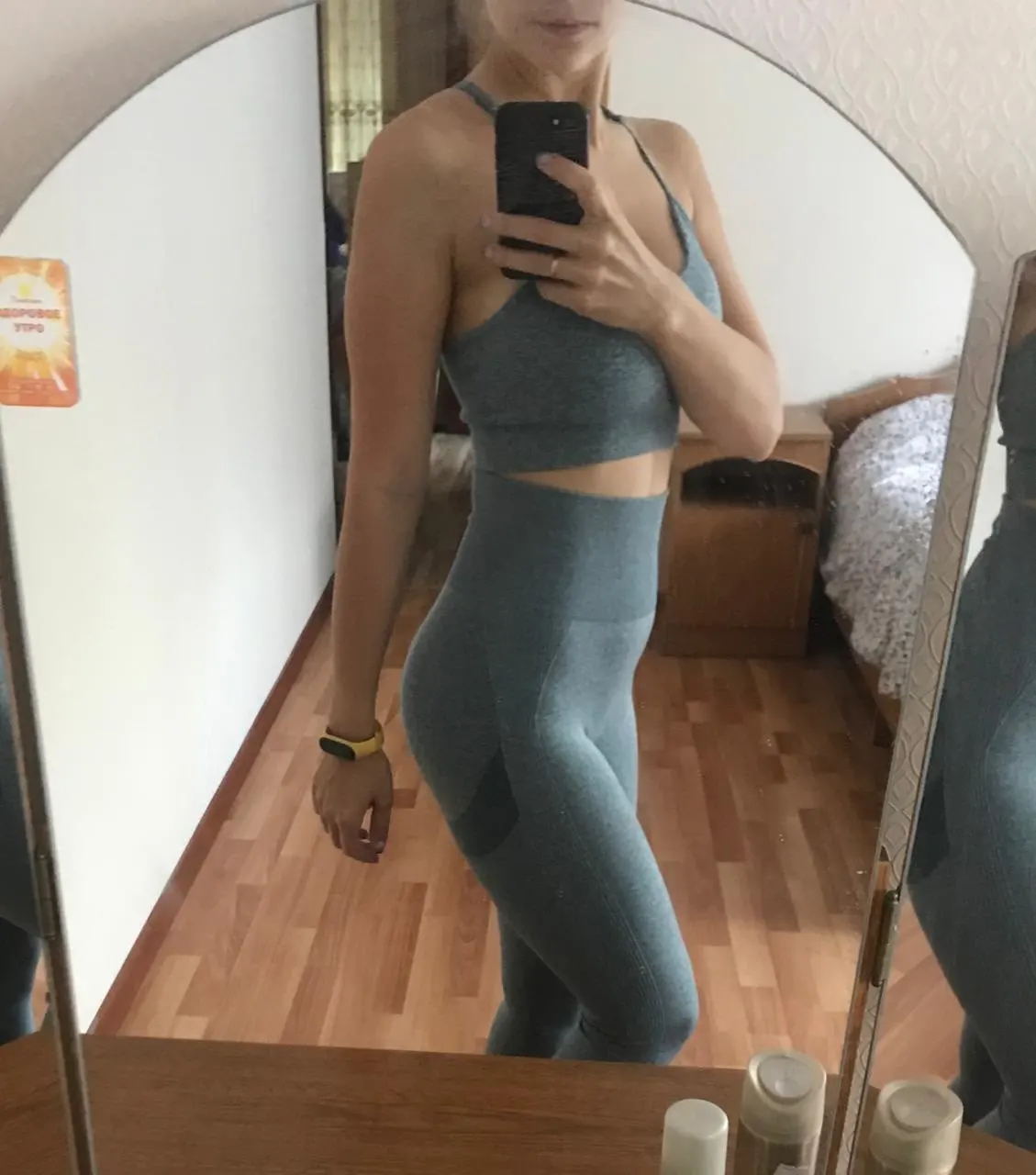 Быстрая доставка и отличный комплект! Материал намного плотнее, чем я думал. Леггинсы выглядят очень привлекательно!
