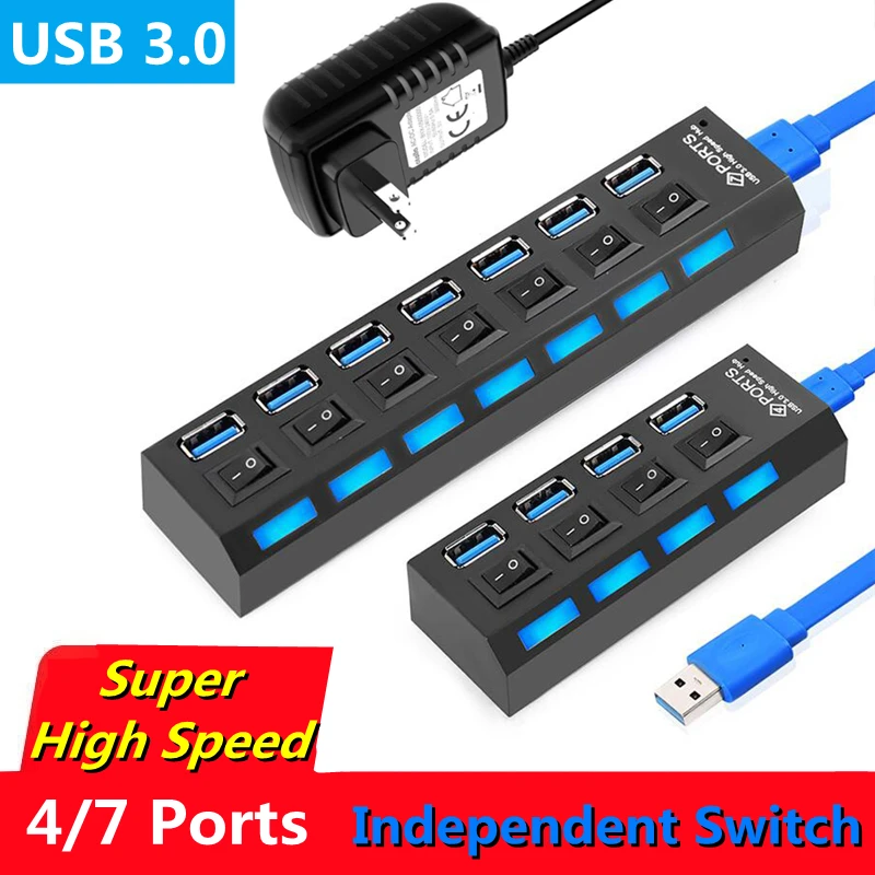 USB 3,0 концентратор usb-хаб 3,0 Мульти USB разветвитель 3 место обитания Применение Мощность адаптер 4/7 Порты и разъёмы несколько расширитель USB 3 концентратор с переключателем для ПК