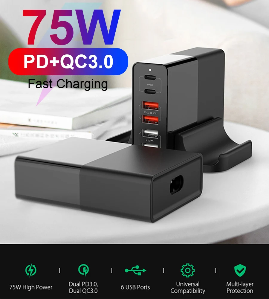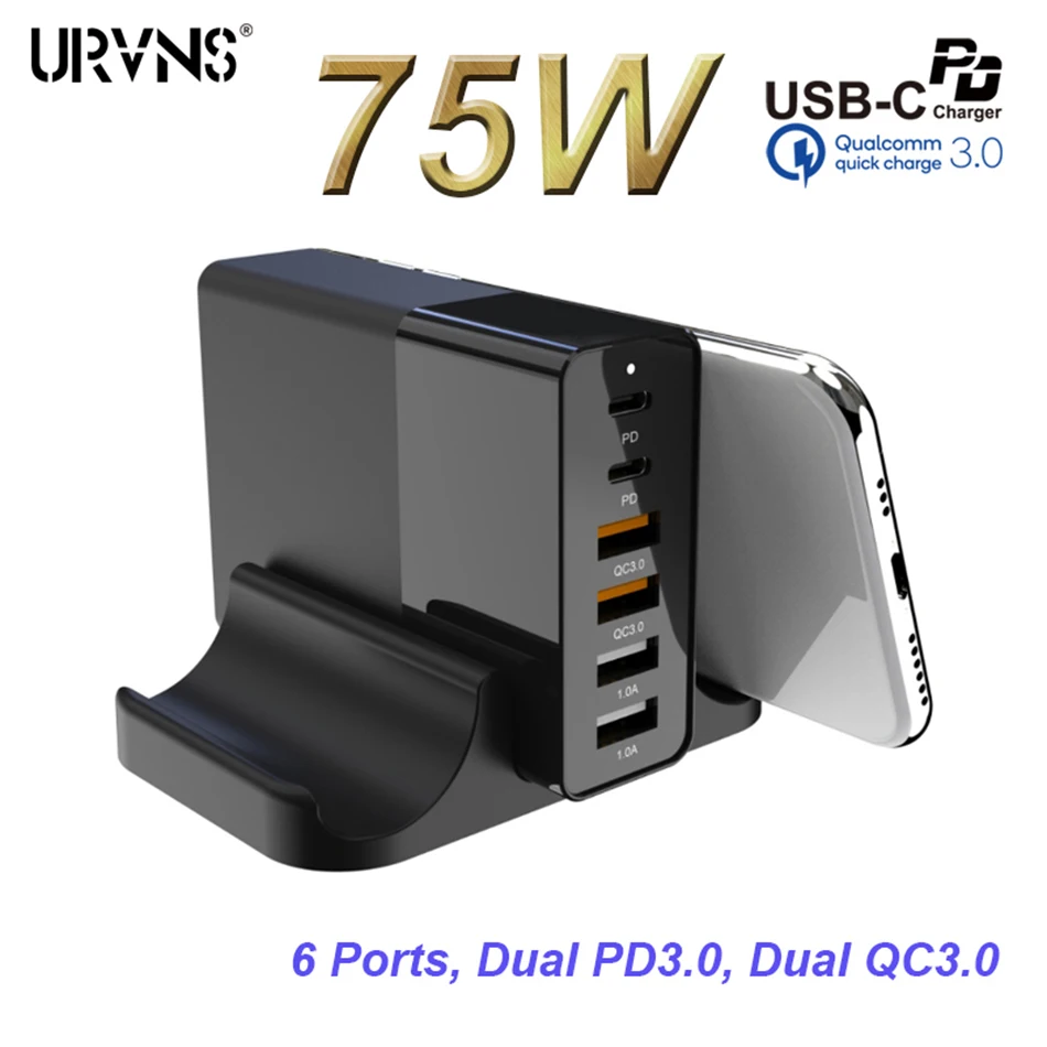 Зарядное устройство URVNS с портом USB Type-C и поддержкой быстрой зарядки, 75 Вт