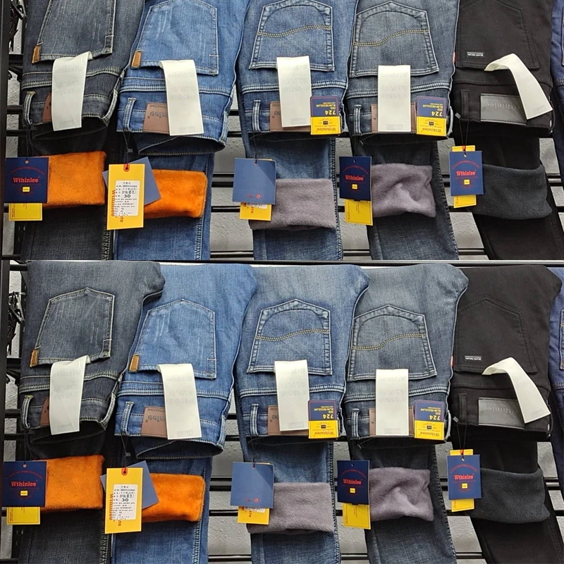 Мужские утепленные джинсы, синие и черные прямые эластичные джинсы на флисе, для повседневной носки, 2020