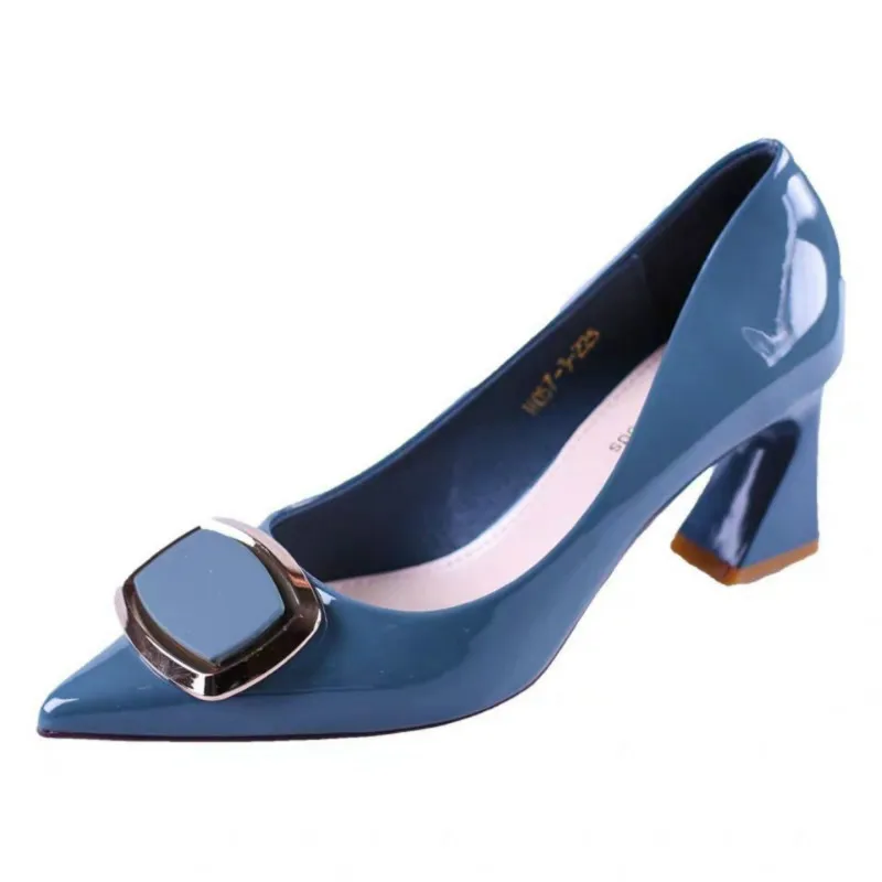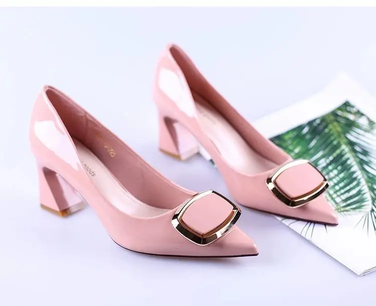 Туфли женские из лакированной кожи, высокий толстый каблук, заостренный носок, пикантная универсальная обувь, телесного цвета