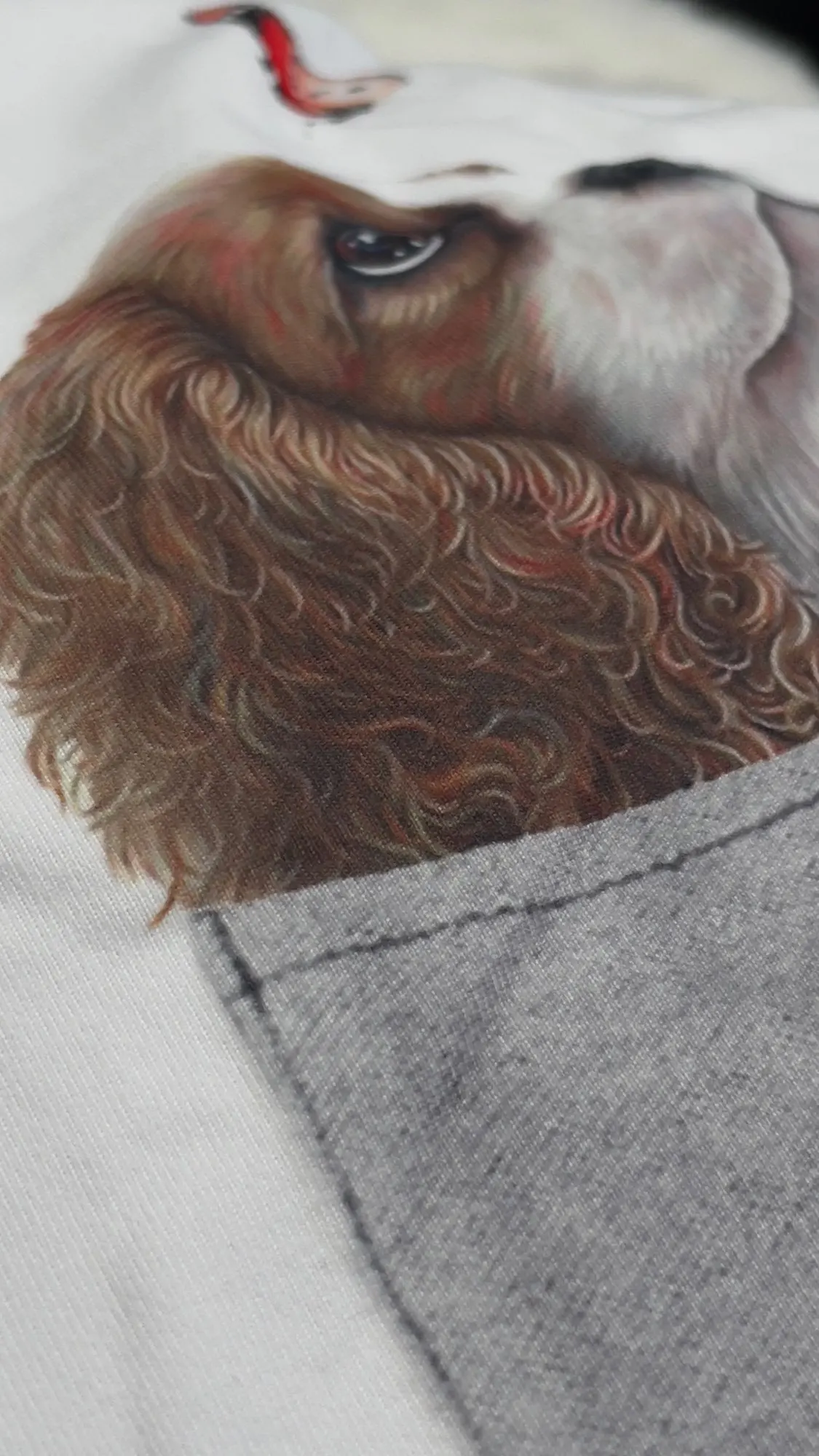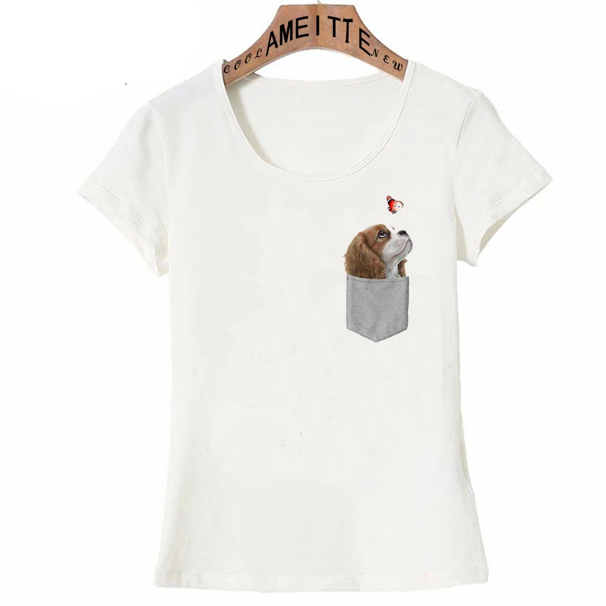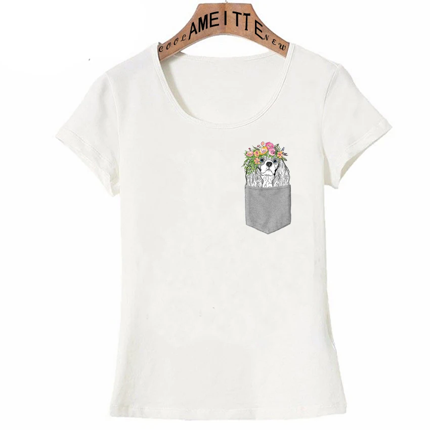 AMEITTE, новая летняя модная женская футболка, кавайная кавалера, король, Чарльз, спаниель, принт с карманами, футболка, повседневные топы, милые футболки для девочек
