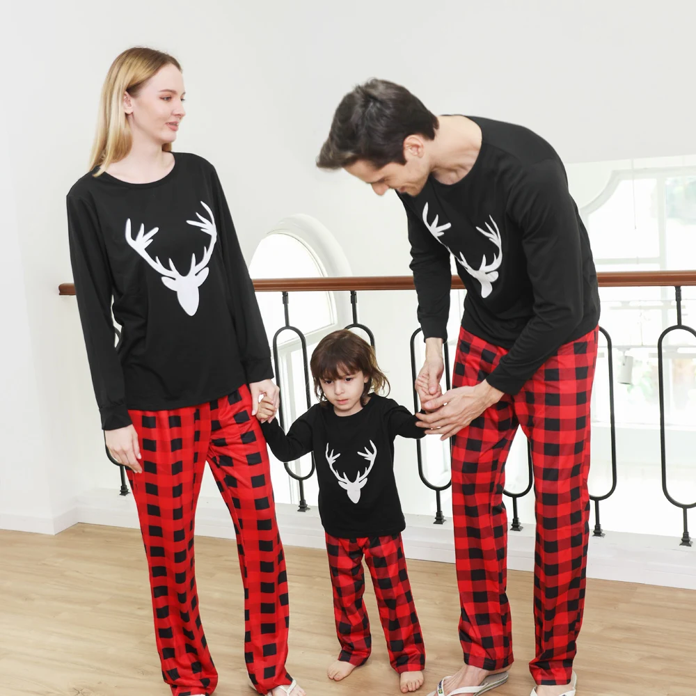 Рождественские Семейные одинаковые наряды, Пижамный комплект для мамы и дочки, костюм для папы, сына, ребенка, детей, костюм с принтом оленя для рождественских предметов