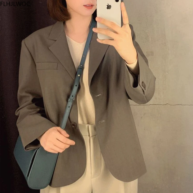 2020 осенне-зимняя верхняя одежда с длинным рукавом, милая Офисная женская уличная однотонная черная однобортная куртка на пуговицах в Корейском стиле