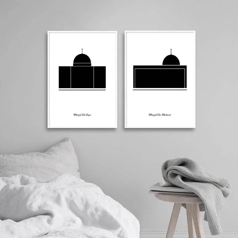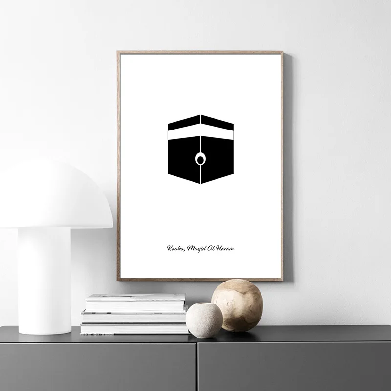 Исламский плакат Kaaba An-Nabawi, черно-белый минималистичный принт, настенная живопись, картина на религиозную тему, Современное украшение для дома