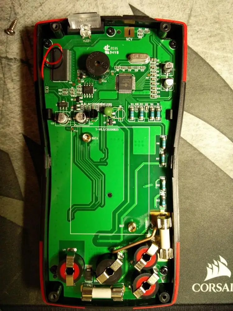 Точность измерения напряжения достаточно высокая, так же как и сопротивлений и ёмкостей. Ток не проверял. В комплекте 2 комплекта проводов 65 см и 120 см длиной. Длинные провода большего сечения и имеют сменные наконечники (иглы двух диаметров, иглы, закрытые изоляцией, пружинные штырьки для крокодильчиков и зажимных клемм). Все провода имеют защитные колпачки и съёмные изолирующие колпачки для закрывания длинной части игл. Внутри вполне достойно пропаяно, но я дополнительно пропаял выводы разъёмов с двух сторон и нанёс дополнительную смазку на переключатель (с завода смазку нанесли в следовых количествах). Чип DTM0660L, вторая большая микросхема со стёртой маркировкой.