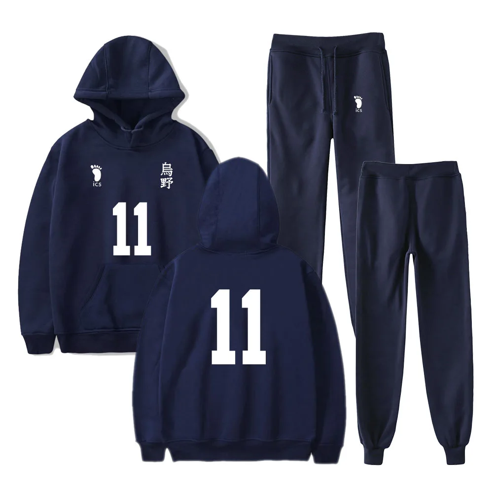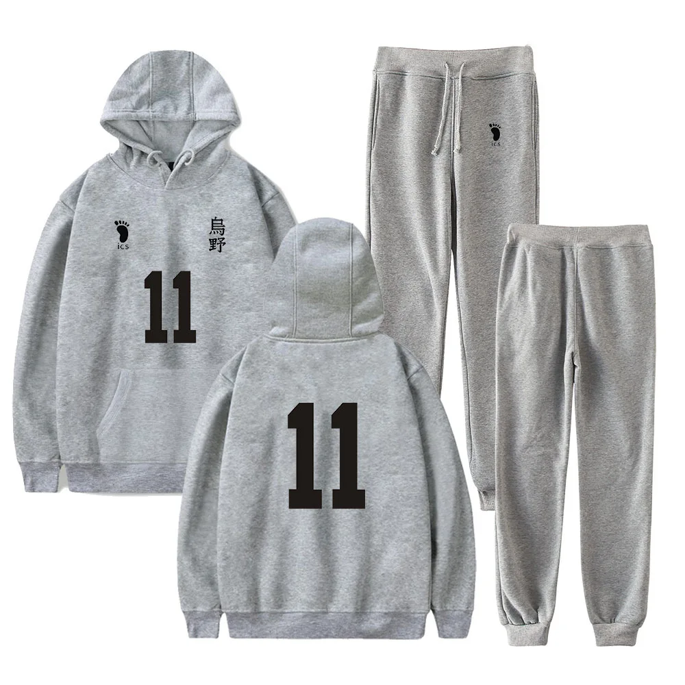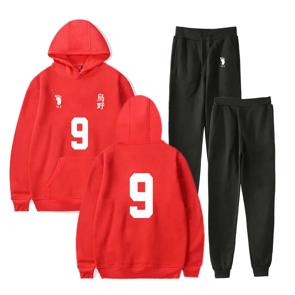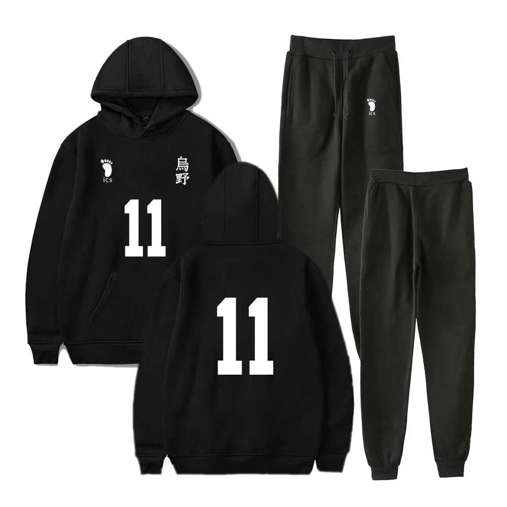 Толстовка Haikyuu с капюшоном и брюки в стиле аниме, свитшот с капюшоном и брюки, спортивный костюм, одежда для мальчиков