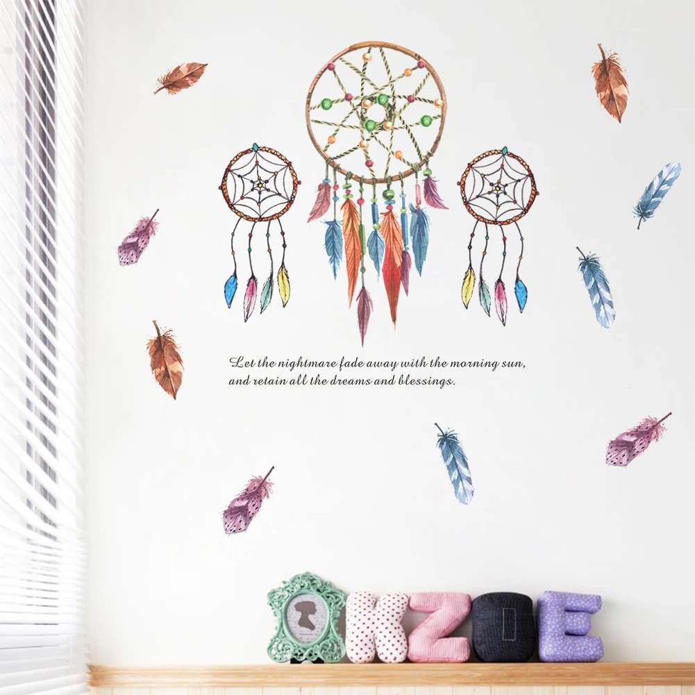 3d-наклейка на стену Ловца снов, декоративное богемное перо с красочными перьями, фрески для гостиной, спальни, дверного стекла