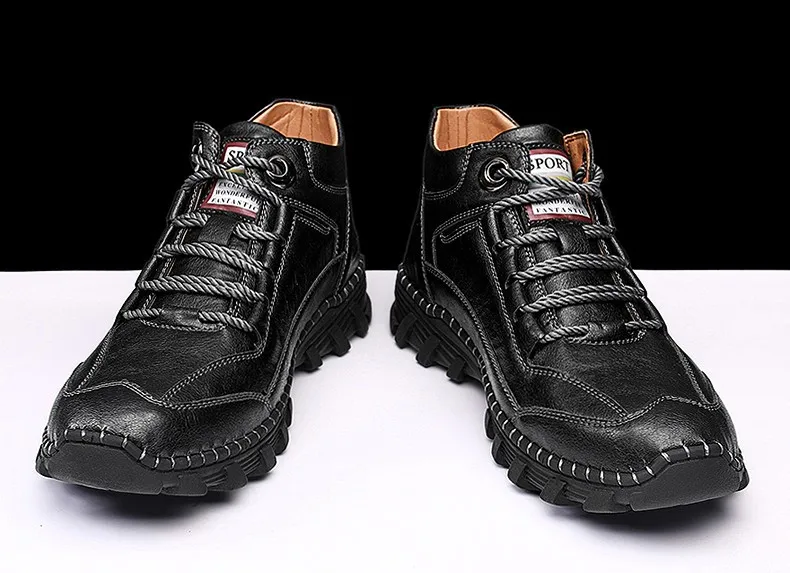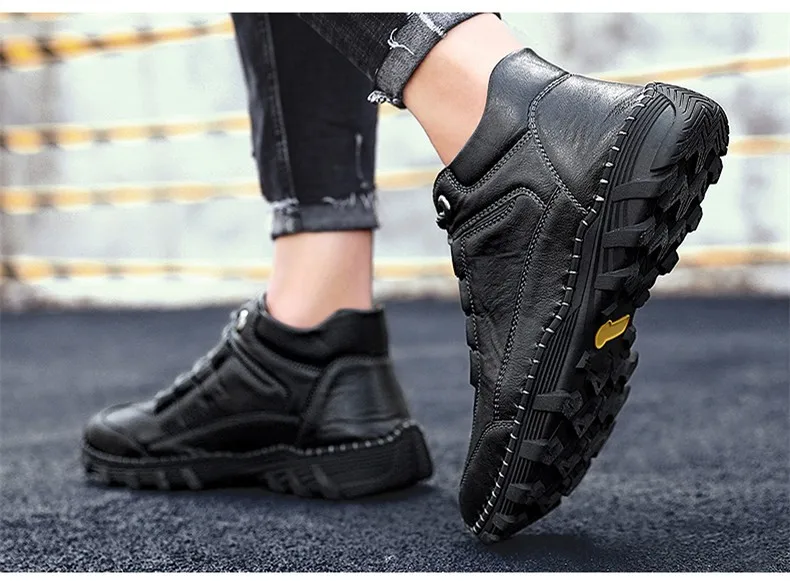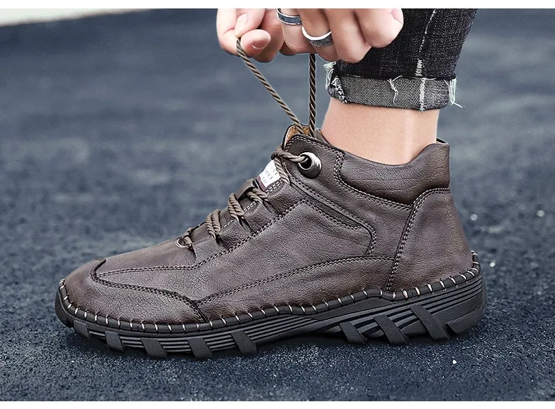 Модные зимние мужские ботинки мужские Ботильоны ручной работы теплые мужские зимние ботинки из толстого плюша осенние уличные мужские мотоботы