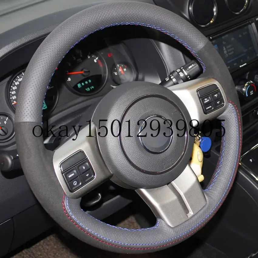 Черная замша из натуральной кожи, ручная работа, чехол на руль для Jeep Compass Grand Cherokee Wrangler Patriot 2012-2014