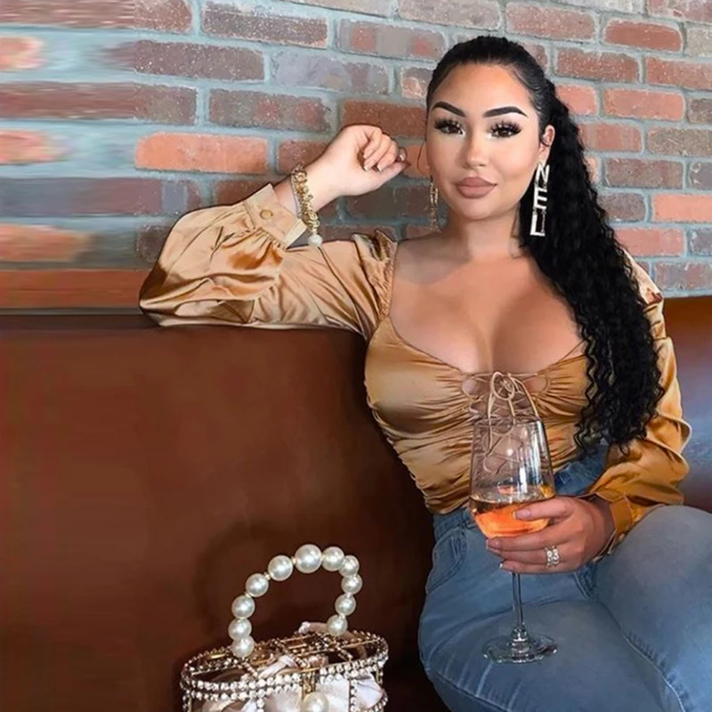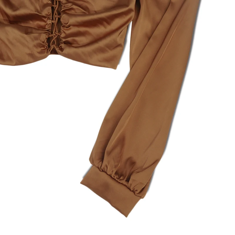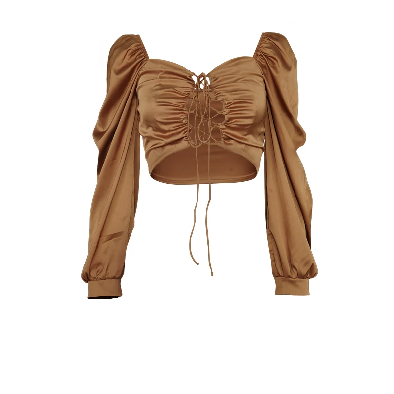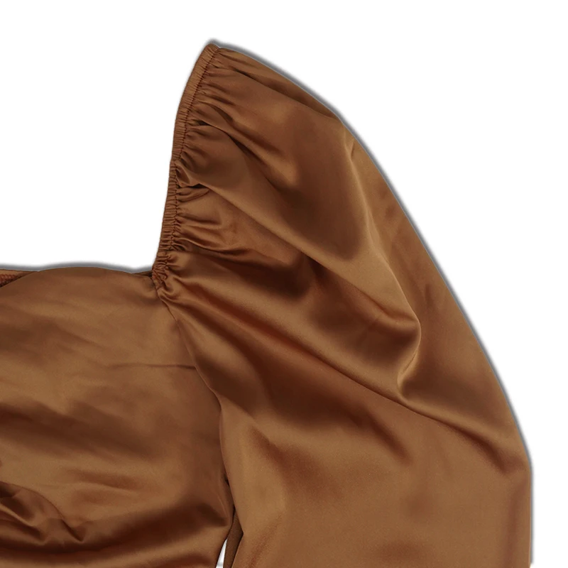 Блузка женская Атласная блестящая с длинным рукавом и квадратным вырезом