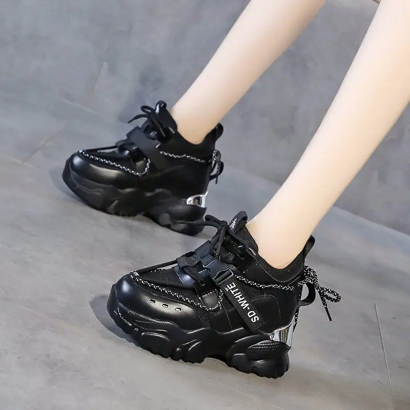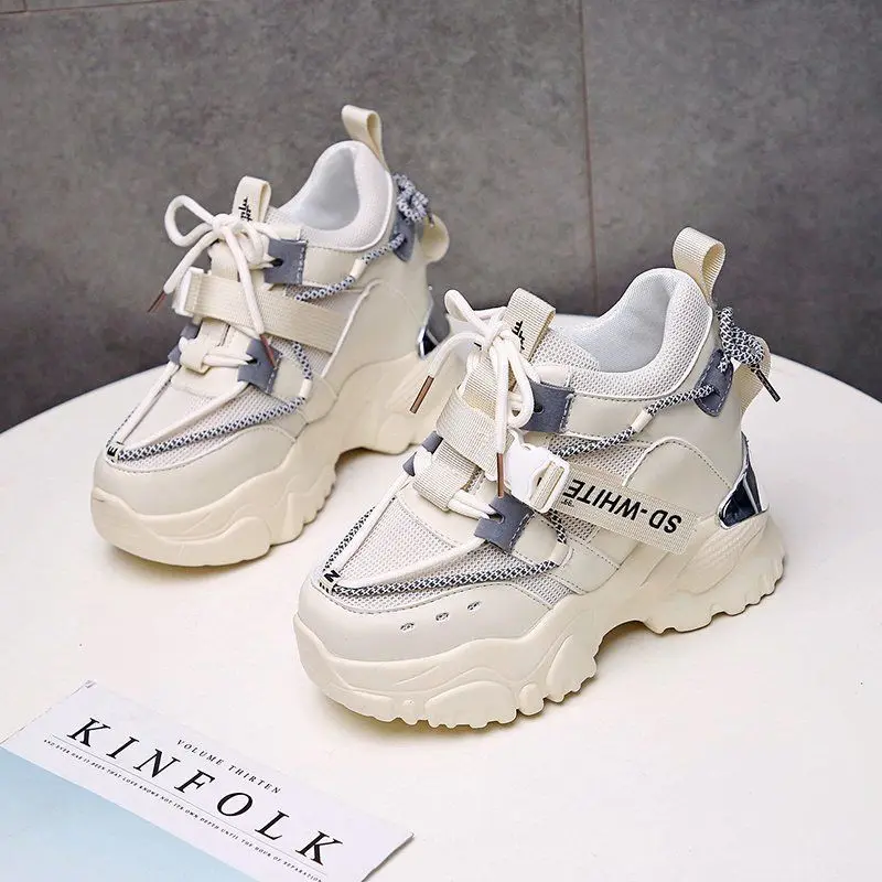 Кроссовки женские универсальные, повседневная сетчатая обувь на толстой подошве, увеличивающая рост, осень 2020
