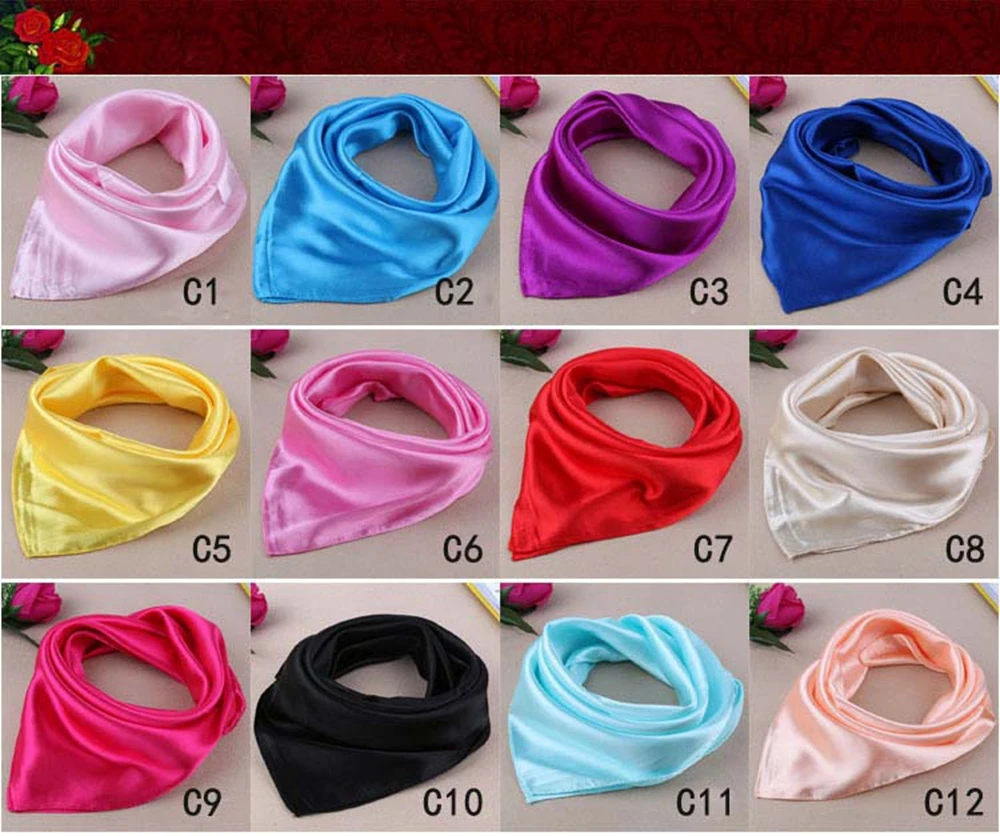 Сезон: весна, лето, осеньДизайн: шарф, шаль, хиджабЦвета: 22 цвета, как на картинкеРазмер: 58*58 см (± 3 см)Материал: сатинПосылка: Opp bagИзмерьте вручную, будет отклонение 2-3 смИз-за разницы в освещении изображение может не совпадать с фактическим цветом товара