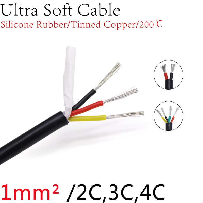 Квадратный 1 мм Ультра мягкий оболочка провод 2 3 4 ядра силиконовый резиновый кабель изолированный гибкий медный высокотемпературный кабель питания черный