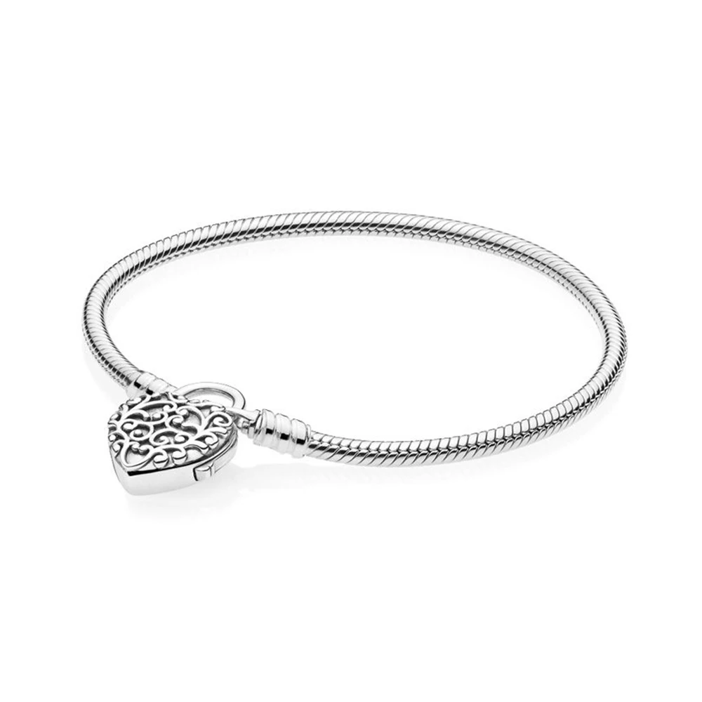 Замок гладкий браслет 100% 925 пробы серебро браслет замок гладкий браслет подходит для европейского оригинальные подвески, сделай сам, ювелирное изделие