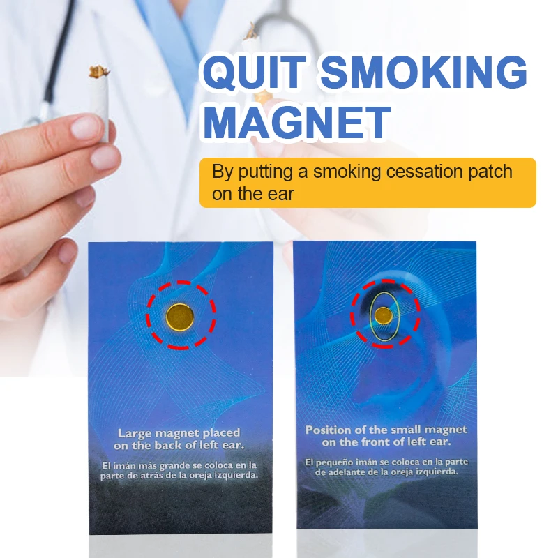 Магнитный пластырь против дыма представляет собой устройство для прекращения курения, которое состоит из пары био-магнитов, которые надеваются внутри и снаружи верхнего уха в определенной точке давления.