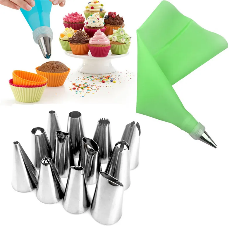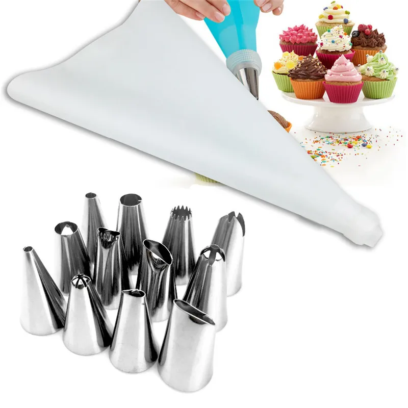 14 шт.компл. силиконовый кондитерский мешок для айсинга и крема + н...