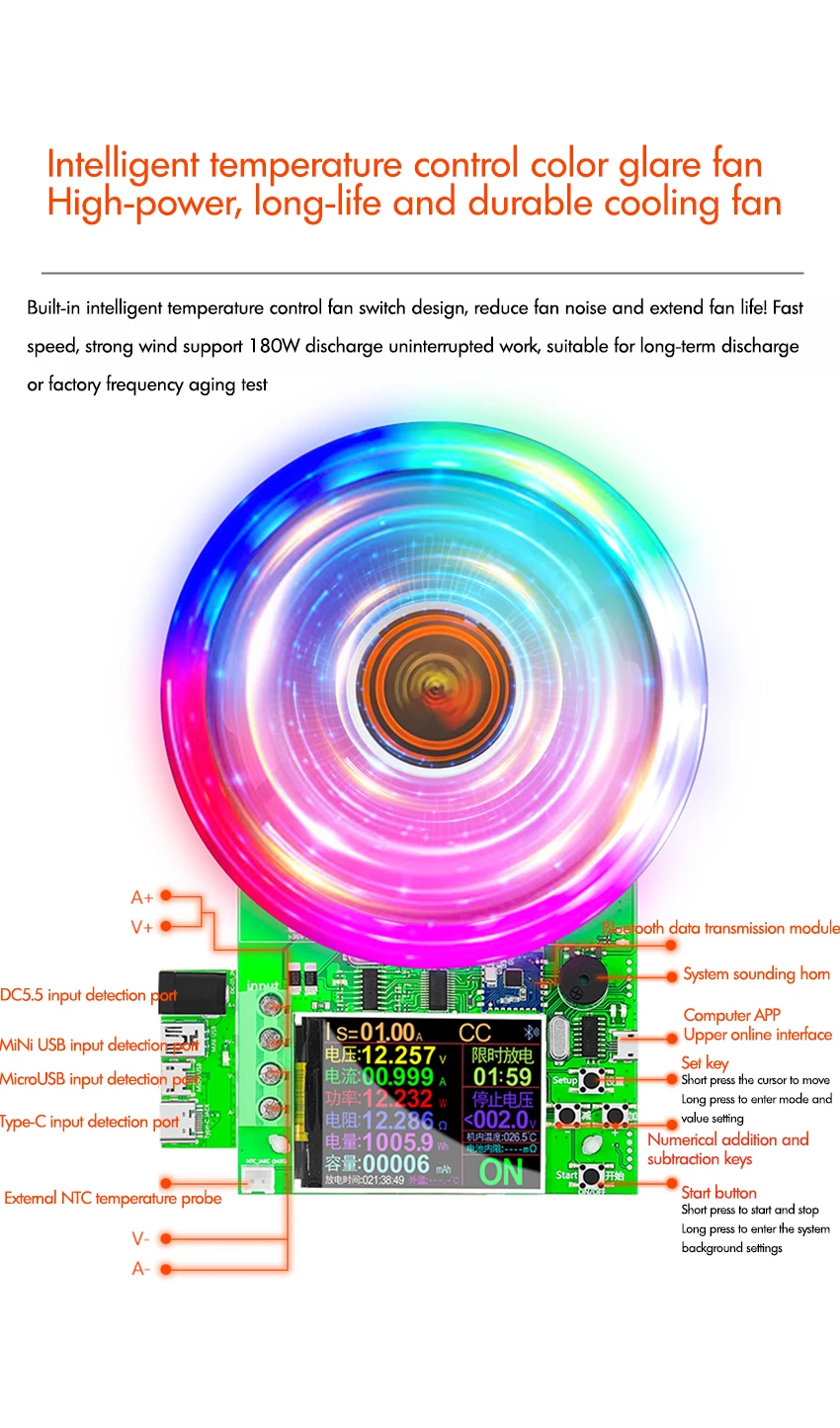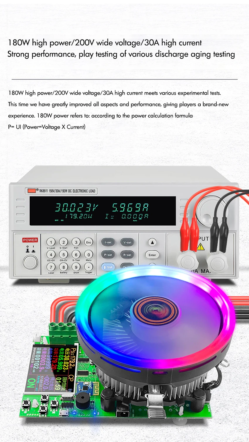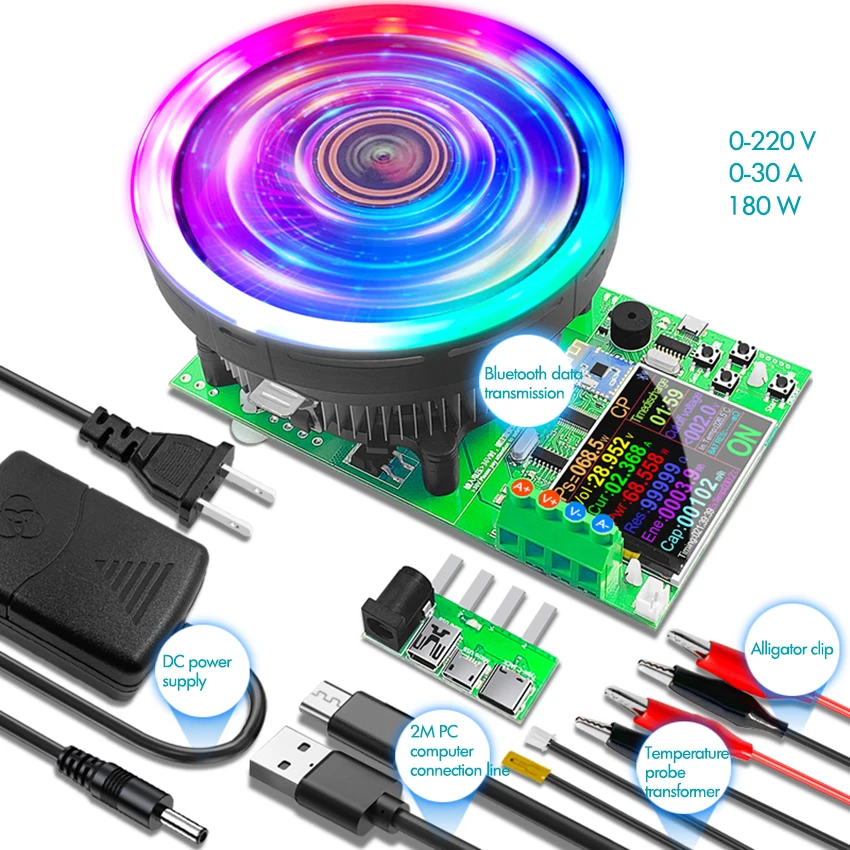 Электронный тестер нагрузки, USB-тестер нагрузки 0-200 в 30 А 180 Вт, регулируемый тестер емкости аккумулятора постоянного тока, модуль, тестер мощности