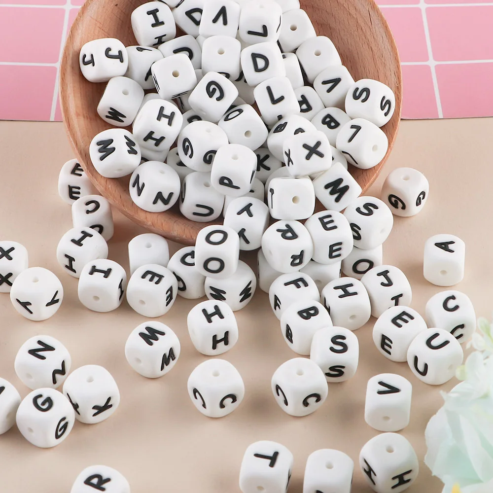100 шт., силиконовые бусины с буквами английского алфавита, 12 мм