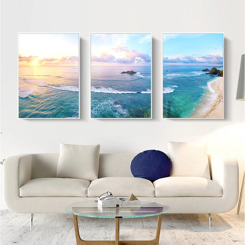 Простой современный скандинавский красивый небольшой свежий морской пляж хорошая волна пейзаж Фотография декоративная картина холст плакат