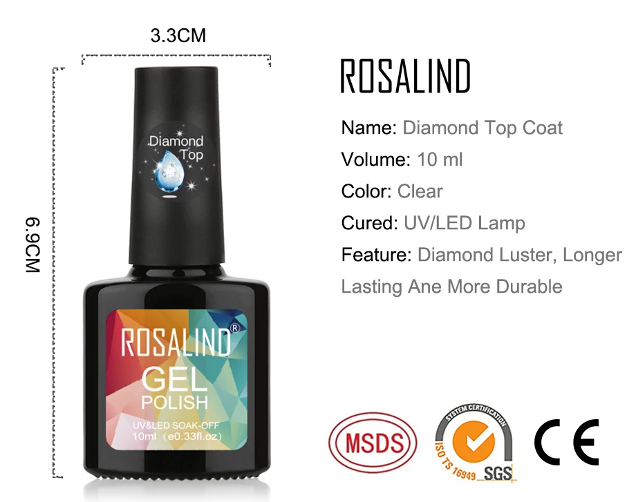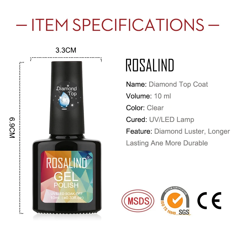 ROSALIND Гель-лак Алмазный лак для ногтей верхнее покрытие все для маникюра матовые верхние ногти Fundation основа грунтовка 10 мл гель-лаки для дизайна ногтей