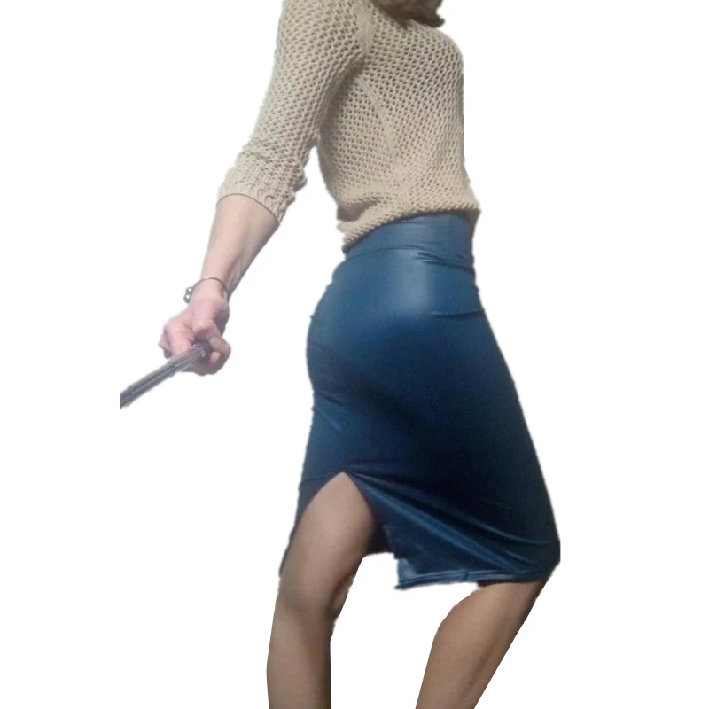 Юбка-карандаш CHSDCSI из искусственной кожи, с высокой талией, облегающая, винтажная, длинная, с открытым разрезом, для клуба