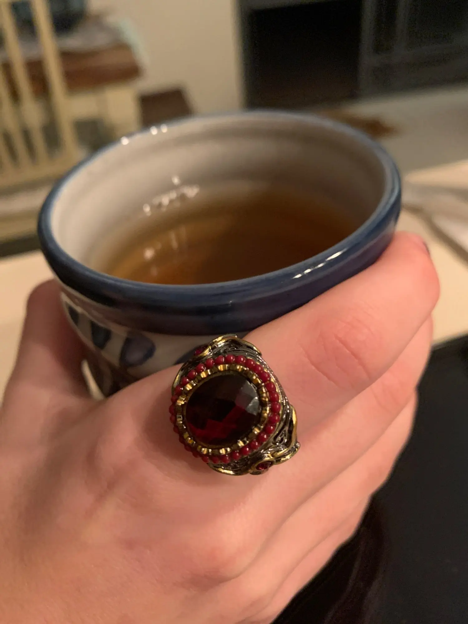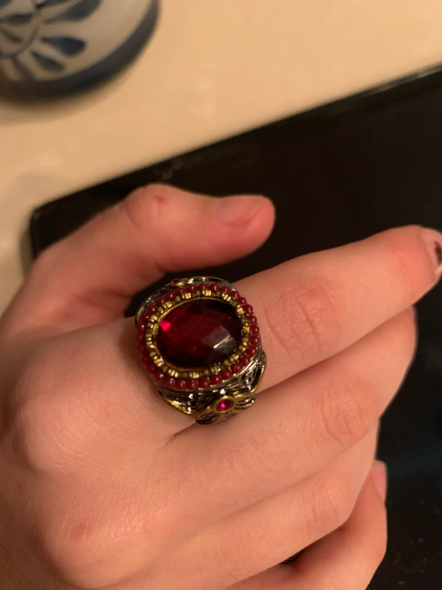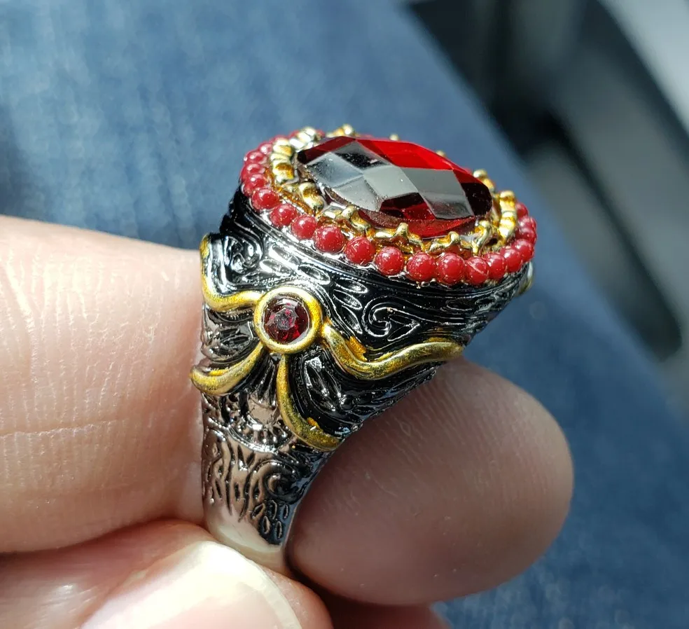 Кольцо выглядит точно так же, как на картинке. Мне очень нравится это кольцо и детали на нем. Товар был отправлен быстро, что мне очень понравилось. Все хорошо!