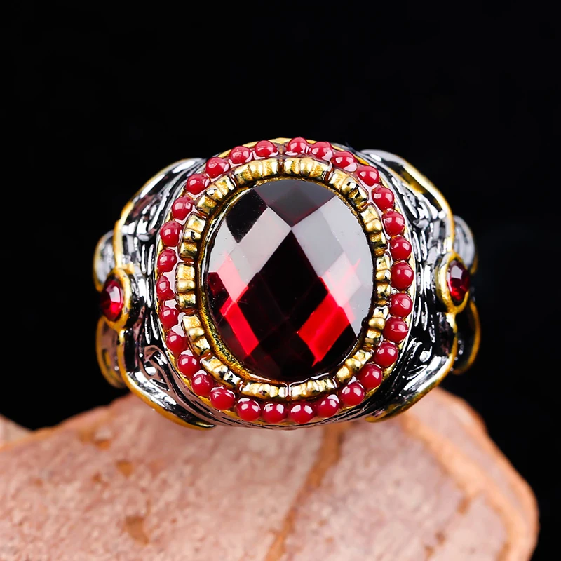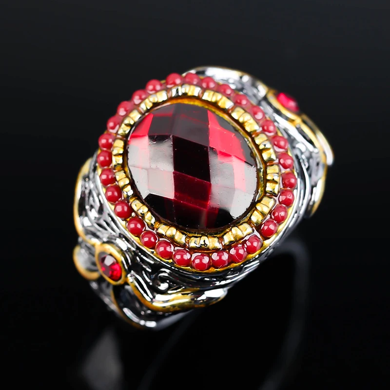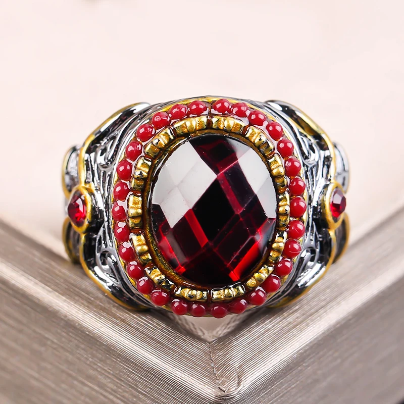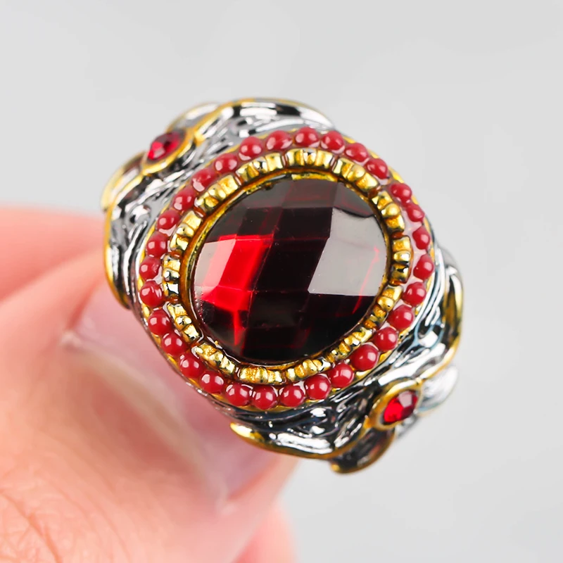 Винтажное двухцветное кольцо-Тотем с большим овальным красным камнем для мужчин и женщин, Готическая вечерние НКА, Ювелирное Украшение в стиле ретро на годовщину