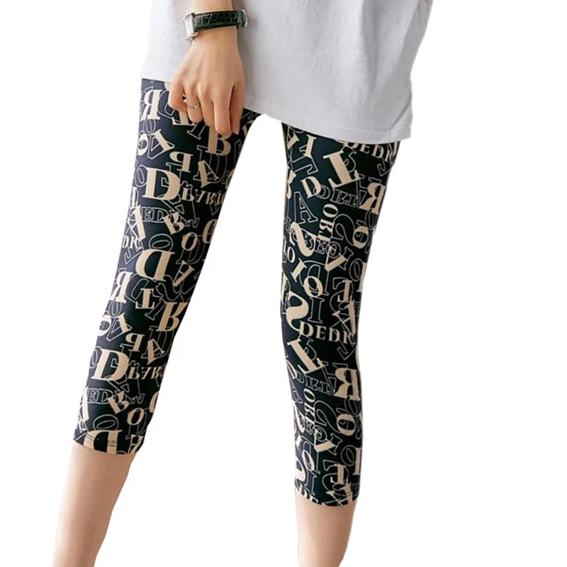 Леггинсы CHSDCSI женские с принтом букв, летние леггинсы с цветочным принтом, короткие капри с эффектом пуш-ап для спортзала и фитнеса