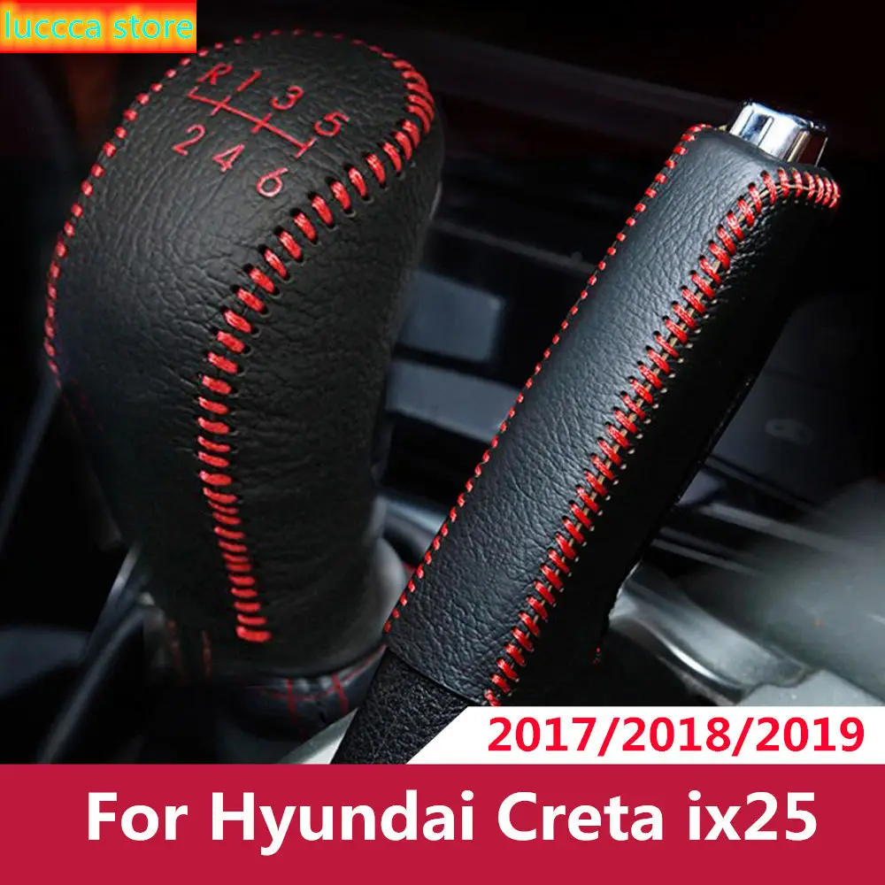 Двое из вас. Аксессуары для Hyundai Creta IX25 2019, кожаная ручка переключения передач, крышка ручного тормоза, товары для защиты интерьера