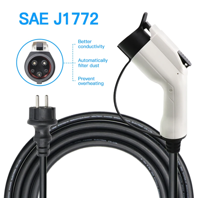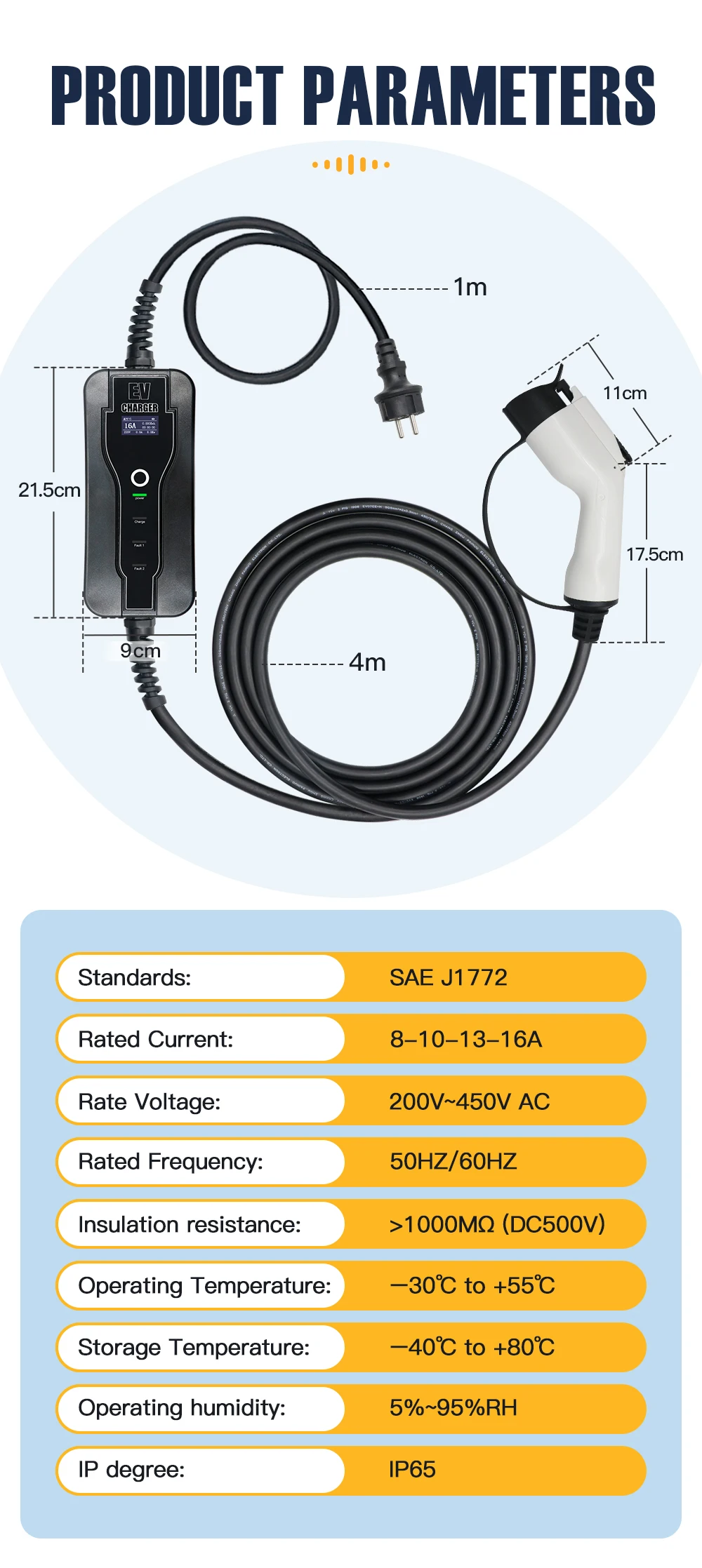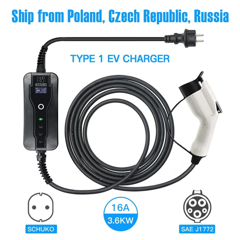 Регулируемое портативное зарядное устройство SAE J1772 EV, 16 А, тип 1, для электромобиля, кабель 5 м BMW, Hyundai, Renault,KIA, Jaguar, Nissan