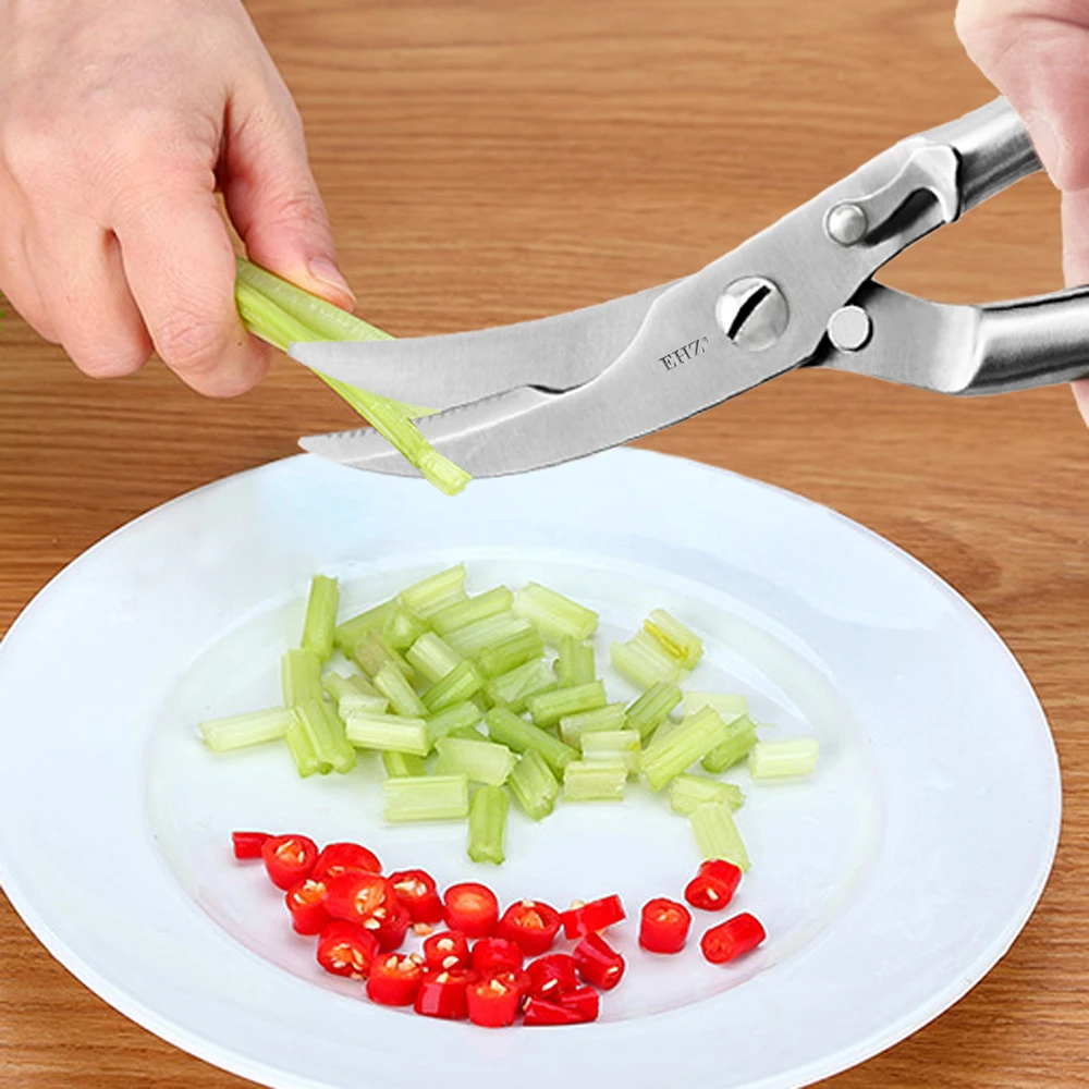 Удобная эргономичная ручка: эргономичные ручки кухонных ножниц обеспечат вам безопасное сцепление, подходит для левого и правого использования. Легко Резать овощи, фрукты, курицу, рыбу, креветки, креветки, мясо и кость.