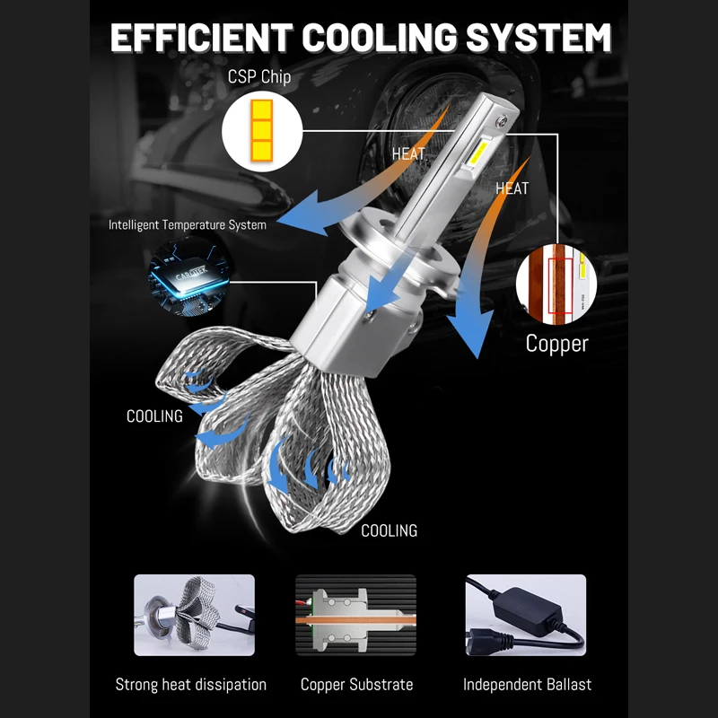 Автомобильные светодиодные лампы CARLITEK, лампы для головных фонарей H1, H4, H7, H11, H8, H9, HB4, HB3, 9006, 9005 лм, 6000K