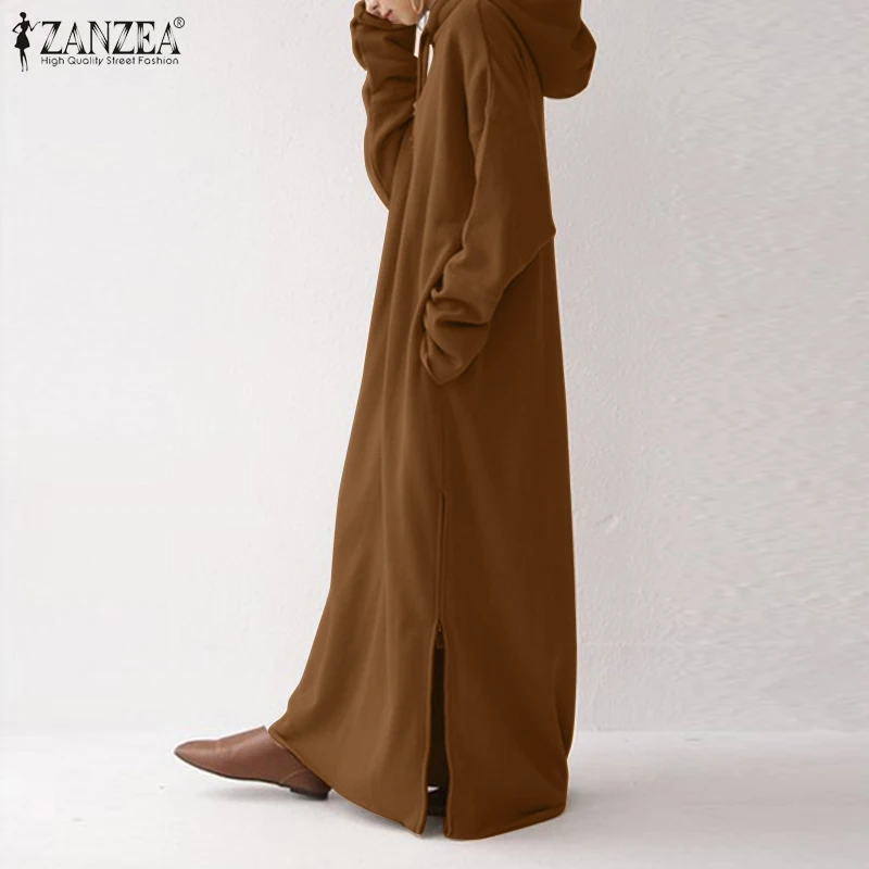 Платье-Толстовка женское осеннее с капюшоном и длинным рукавом