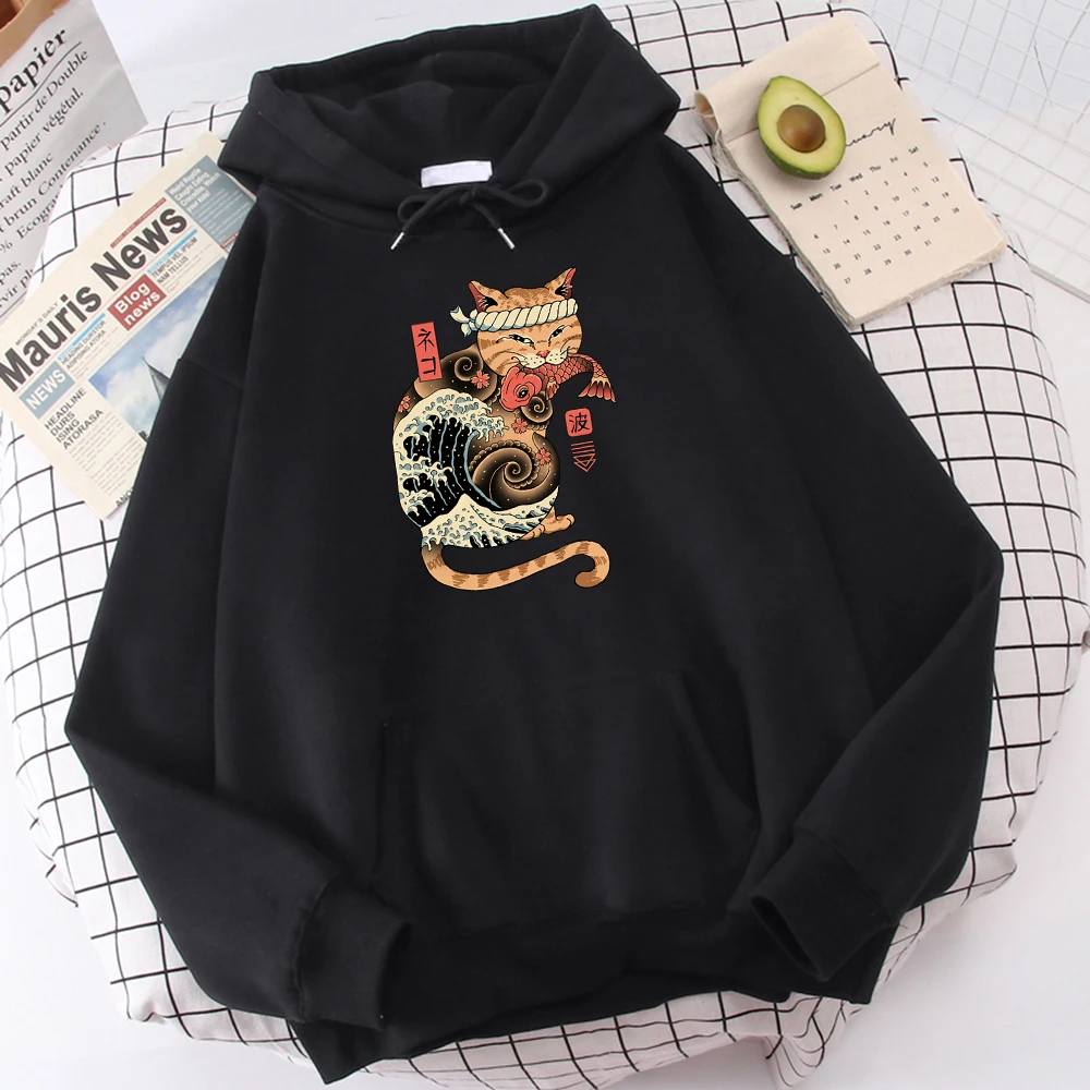 Neko Ramen Ukiyo-e Japan Comics Print Clothing Male Pattern Oversiz...
