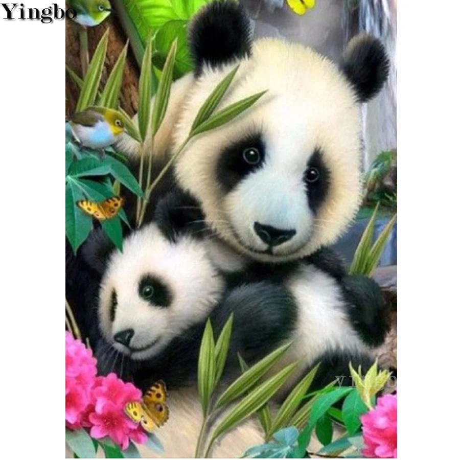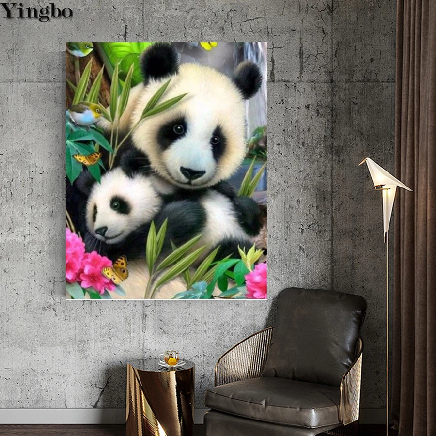 Алмазная картина, вышивка крестом, панда, семейный цветок, животное, алмазная вышивка, полностью квадратная круглая дрель, Алмазная мозаика, стразы