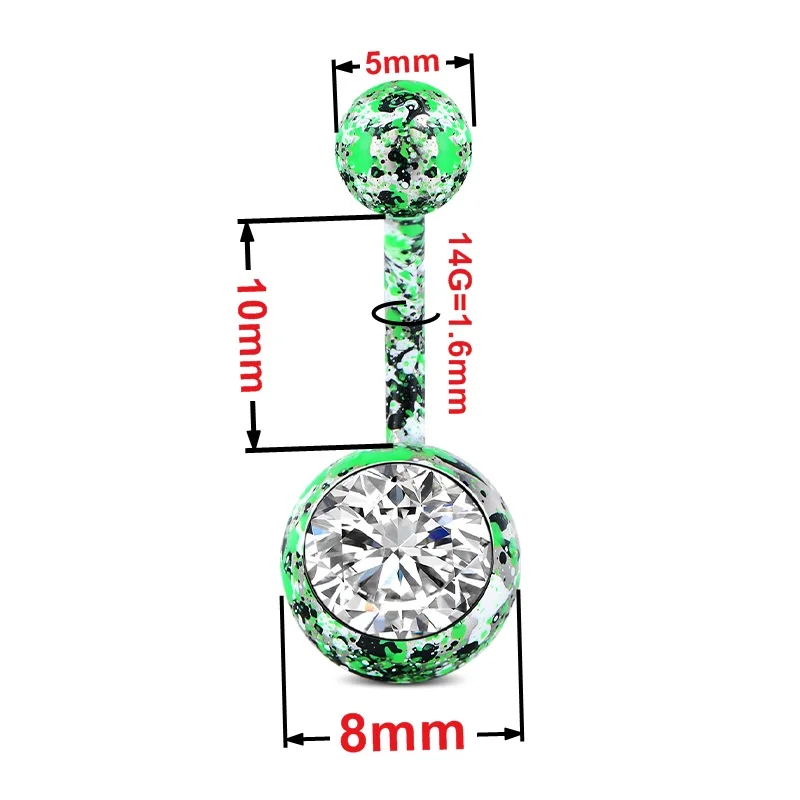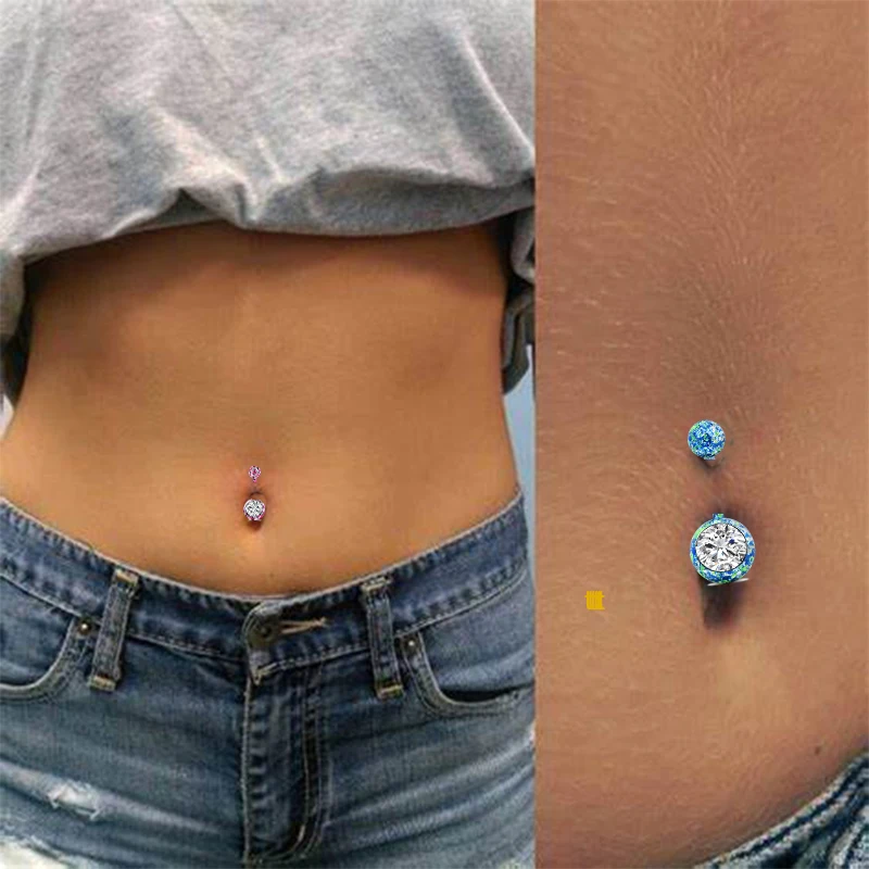 14 г 1 шт. для пирсинга, из хирургической стали один с украшением в виде кристаллов Стразы пупка Кольца пирсинг для пупка Ombligo 58 мм шар Nombril