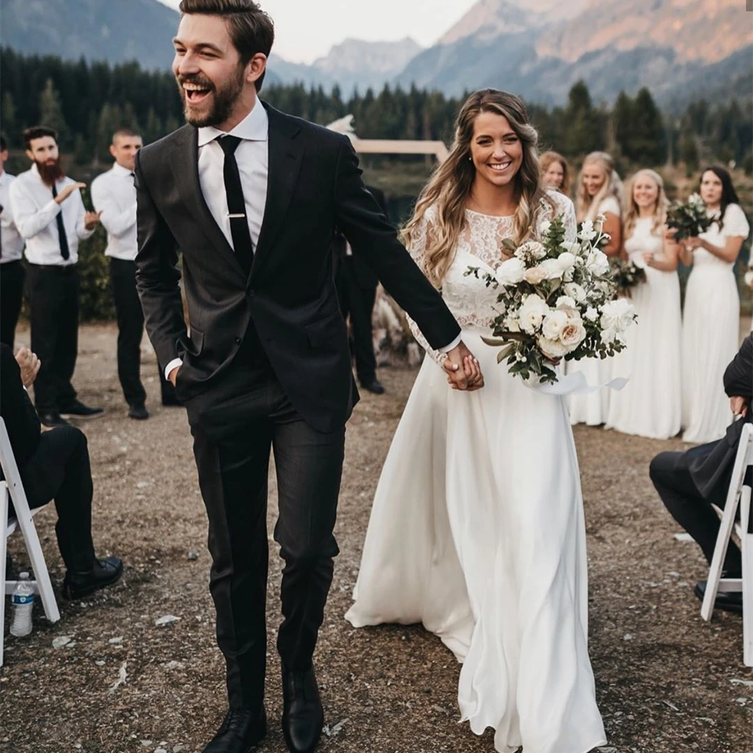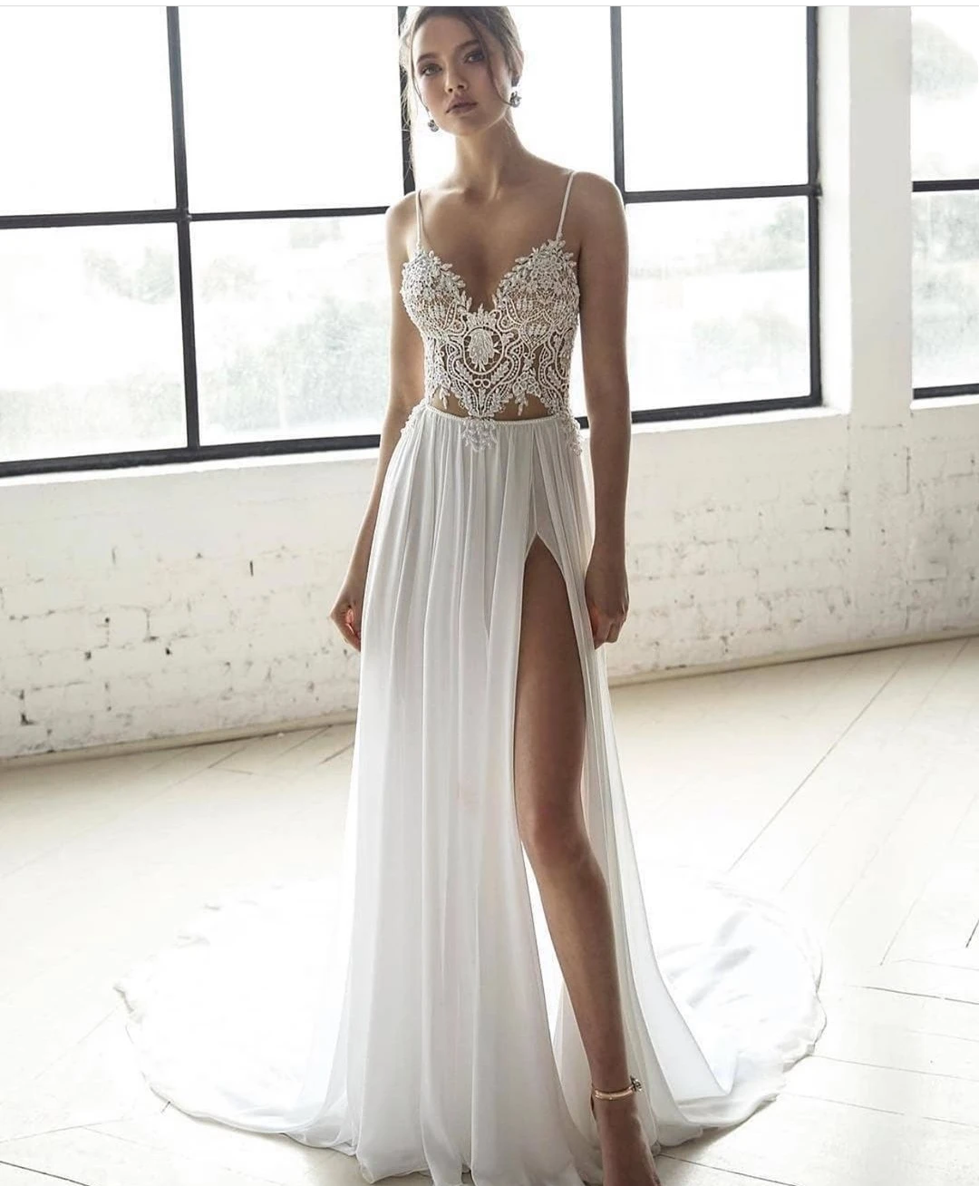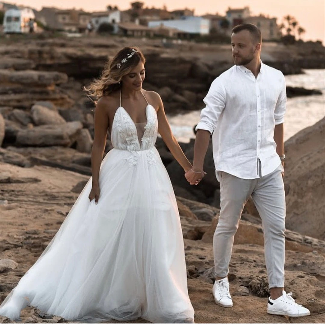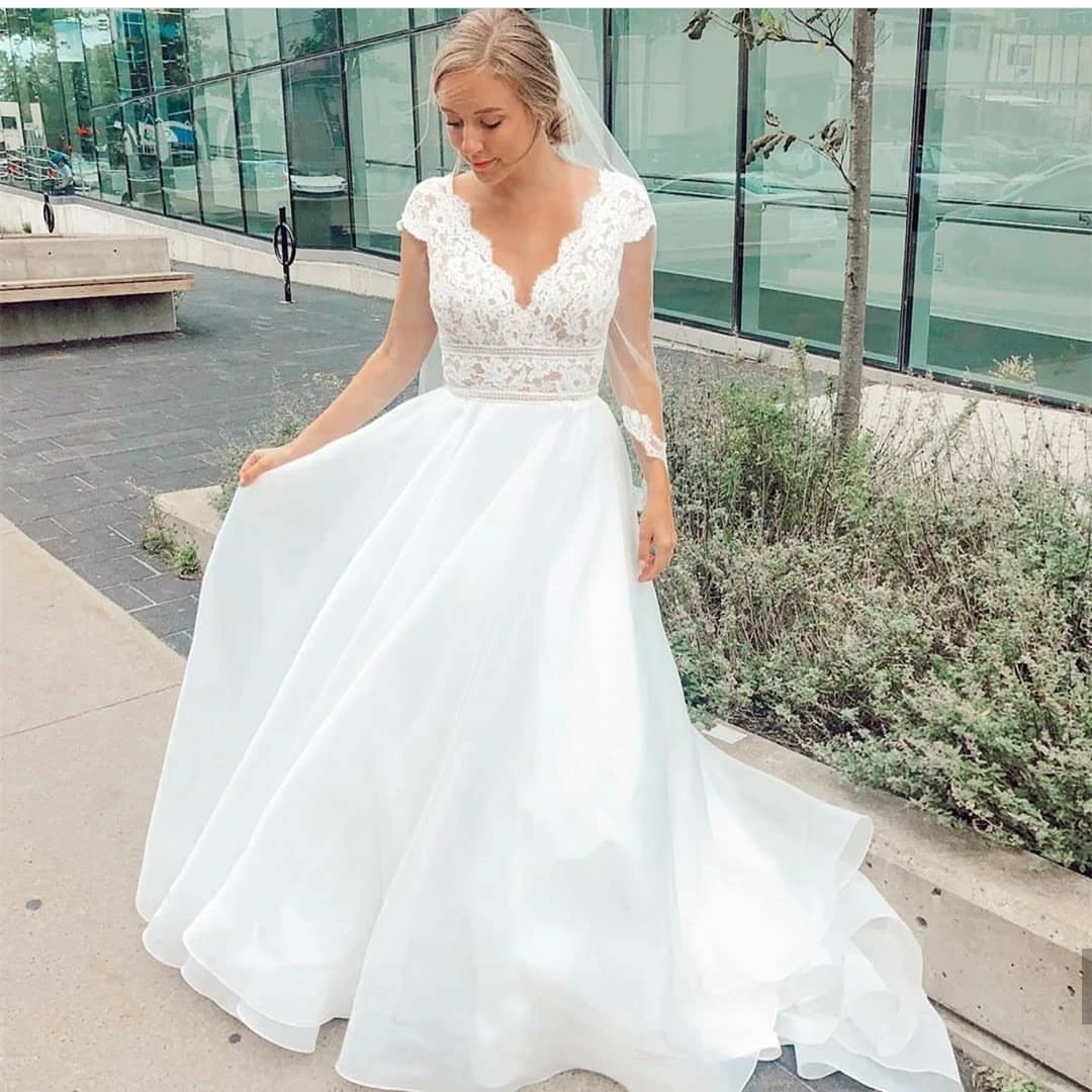Винтажное кружевное богемное свадебное платье Boho 2021 ТРАПЕЦИЕВИДНОЕ простое пляжное свадебное платье из шифона длиной до пола с v-образным вырезом и шлейфом с открытой спиной
