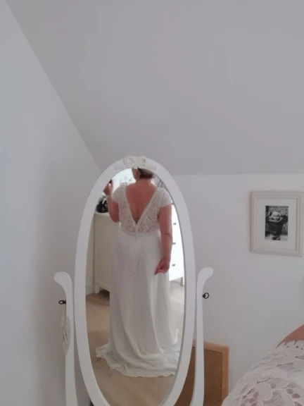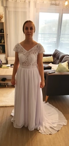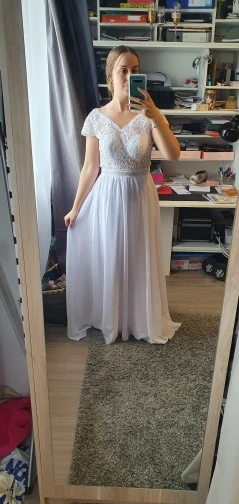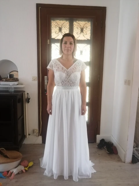 Очень красивое платье. Сначала у меня была небольшая оценка, и, честно говоря, я не разочарован. Я послал свои измерения, у меня просто есть подкраска, чтобы сделать размер, но я планировал немного шире. Единственным небольшим недостатком является пенопластовая оболочка на груди (я собираюсь удалить их швеей) и Кружево, которое не совсем то же самое, что на фото, но это действительно красиво и соотношение цены и качества