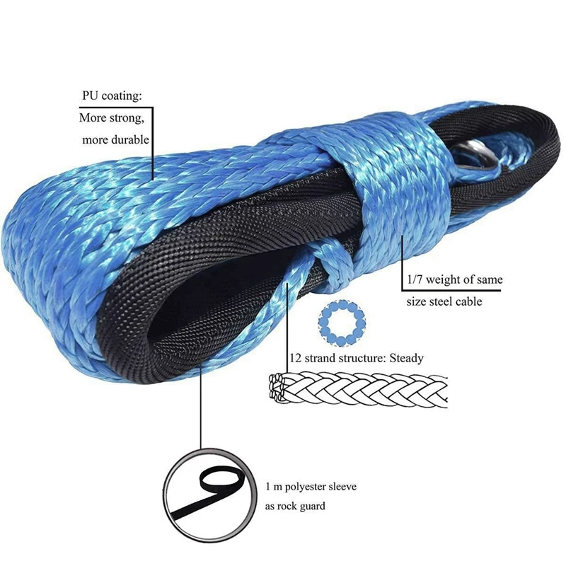 Трос для Электрической Лебедки, нейлоновый трос высокой прочности, 6 мм x 15 м, 7700 фунтов