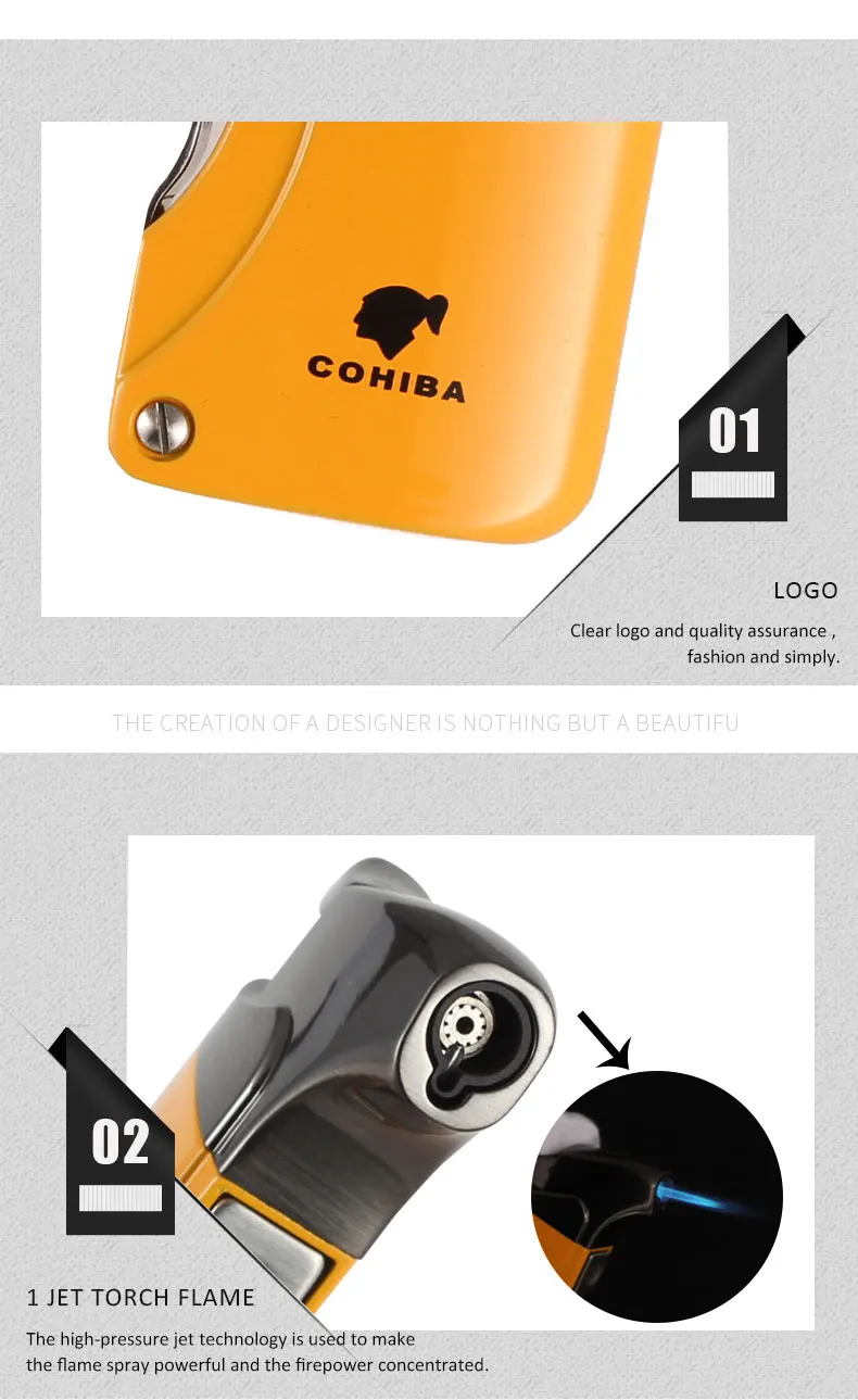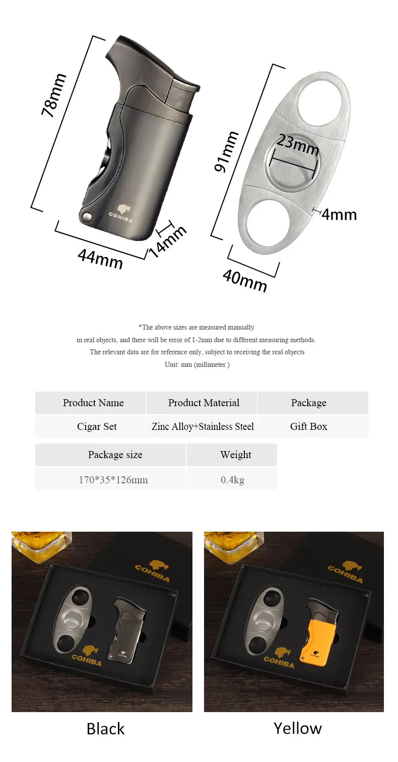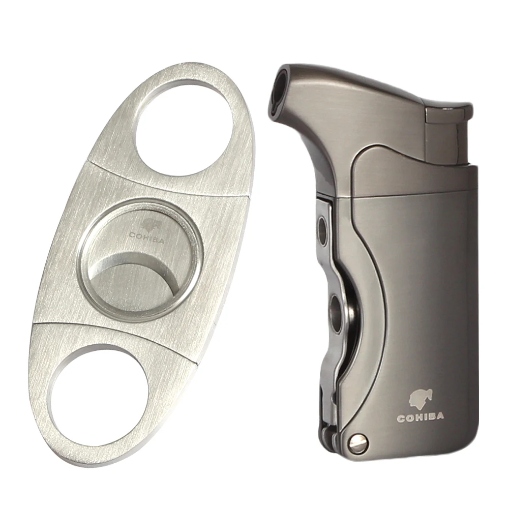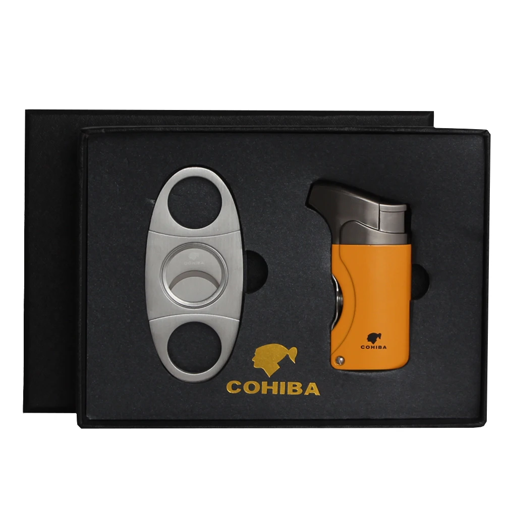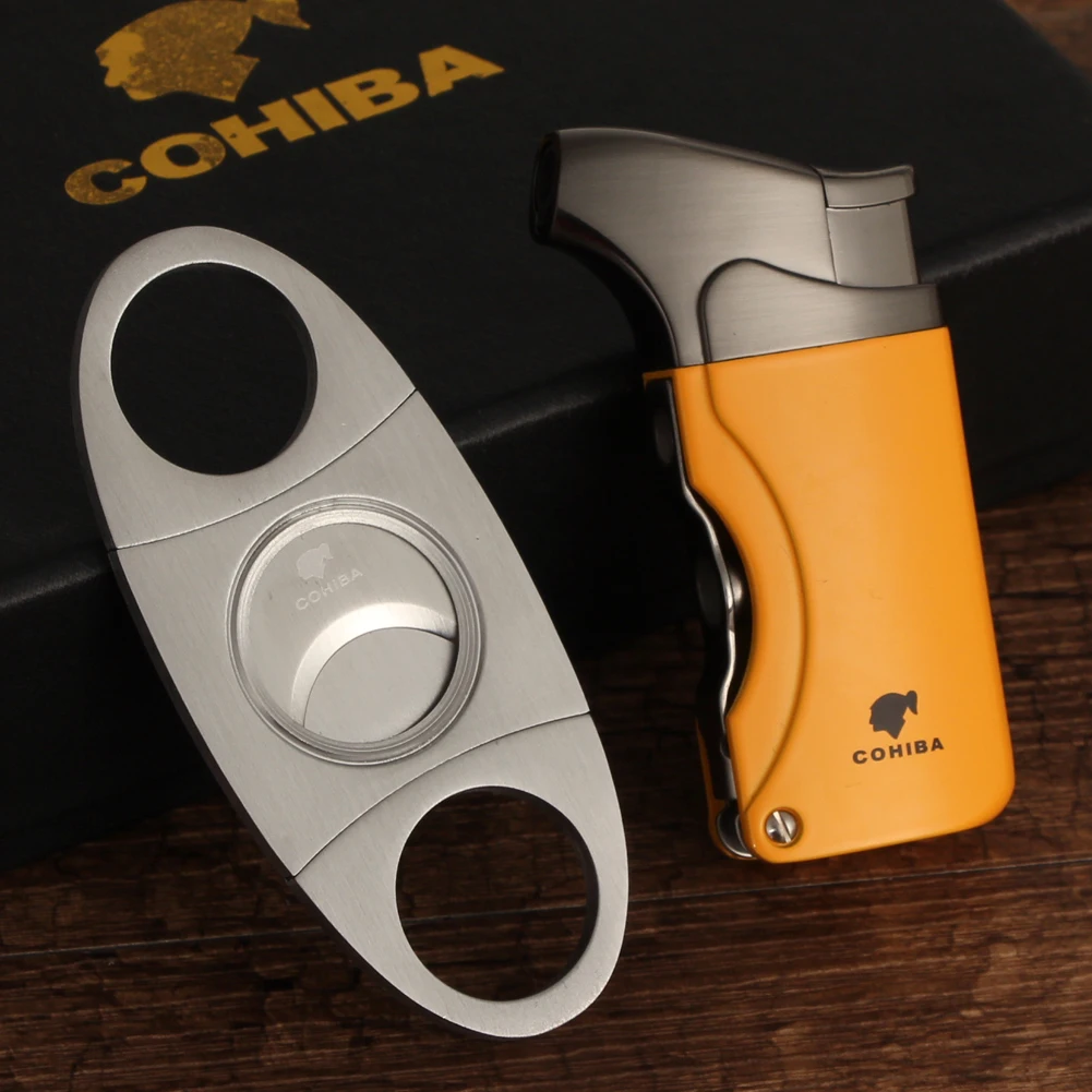 COHIBA фонарь жигалка для сигар, ветрозащитная зажигалка, резак для сигар, ножницы, острый набор резаков для сигар в подарок