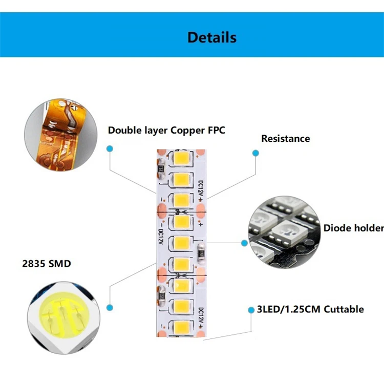 4. Вариант с полоской, мы используем 2835 240 светодиодов на метр полосы, которая составляет 9 Вт каждая полоса в 50 см.