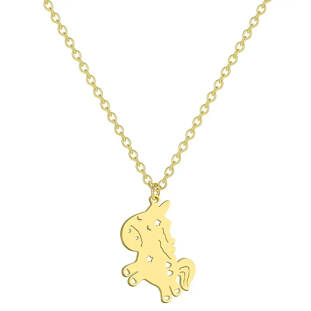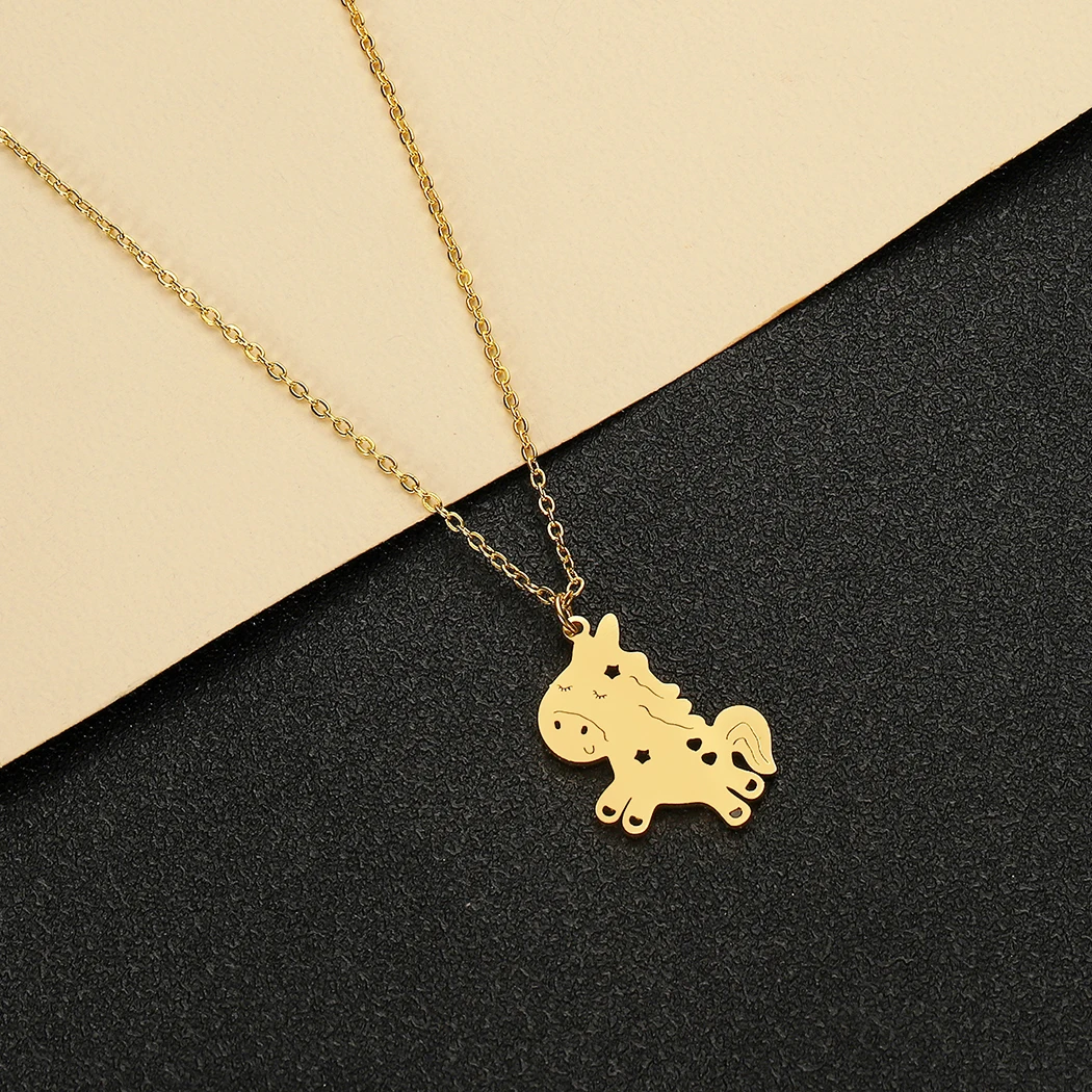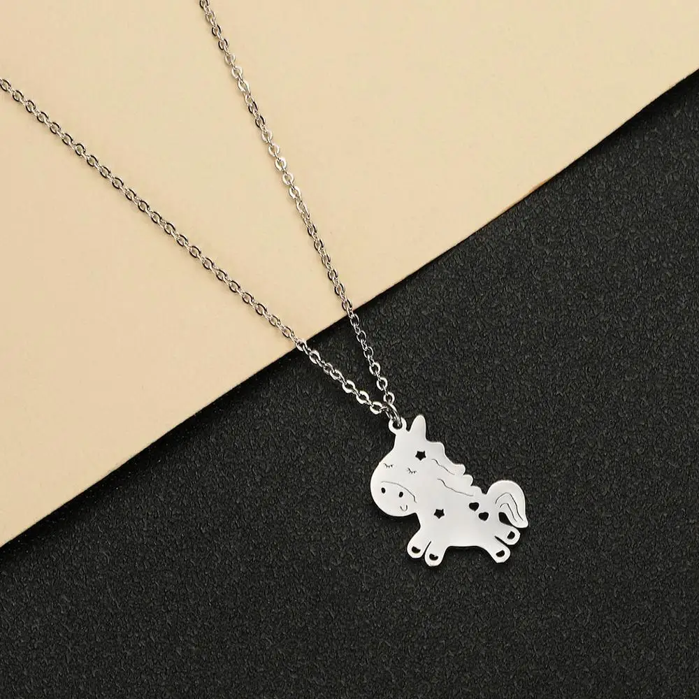 Chandler из нержавеющей стали с героями мультфильмов Единорог Лошадь колье для детей, для девочек, Best Friends Forever Animal Collares ювелирные изделия