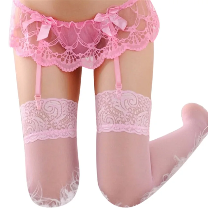 Сексуальные чулки кружевные с мягким верхом до бедра + Пояс для чулок Нижнее белье женские колготки эротические колготки чулки