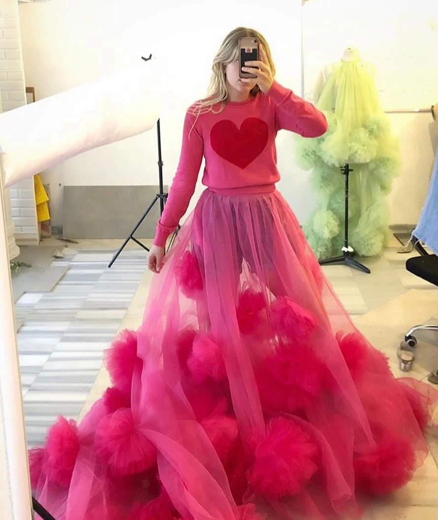 Модная красная прозрачная тюлевая женская юбка, длинная шикарная юбка-пачка с 3D рисунком бальных цветов для фотосессии, уникальная одежда вечерние выпускного вечера
