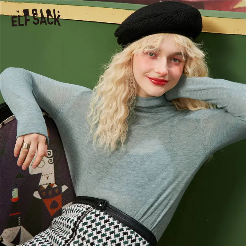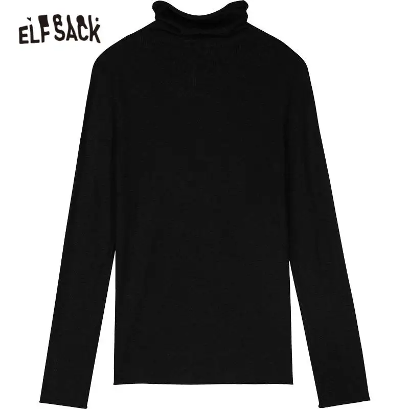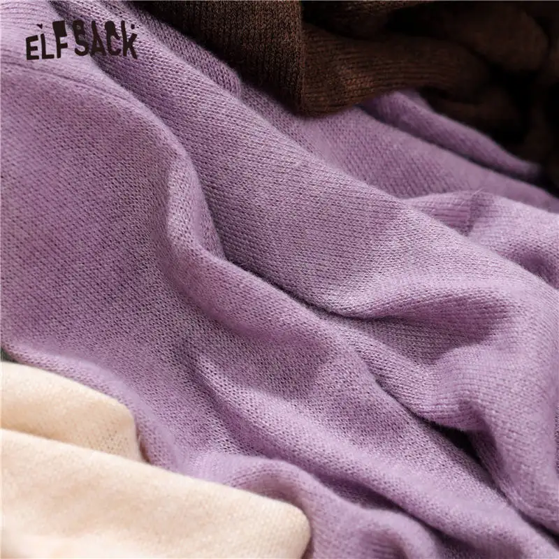 ELFSACK многоцветный однотонный Повседневный вязаный минималистичный женский свитер, осень 2020, ELF Чистый длинный рукав, корейские женские тонкие топы на каждый день